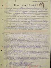 Представлялся к наградам: ордену "АЛЕКСАНДРА НЕВСКОГО" (03.1945).
