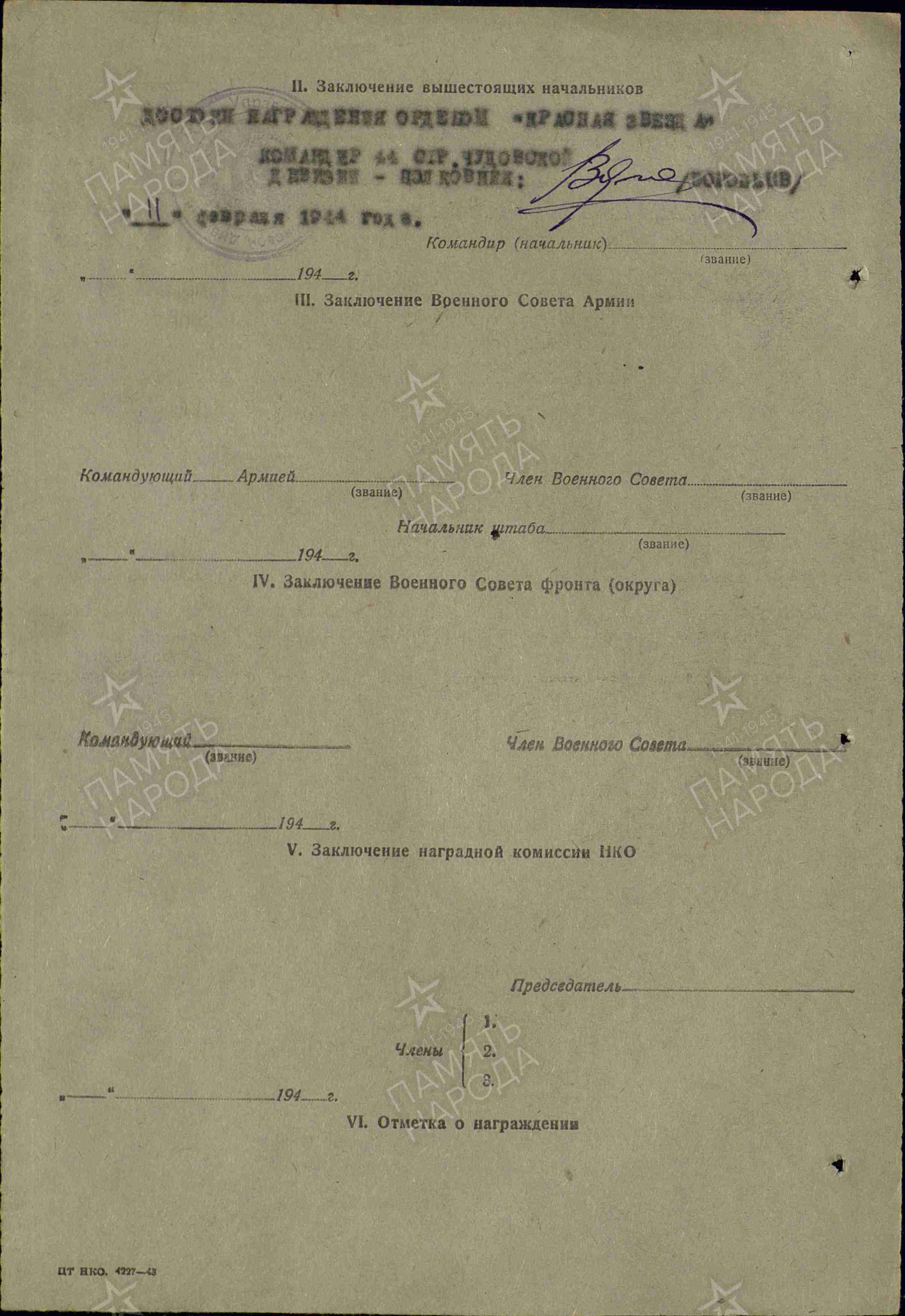 Орден:  "КРАСНОЙ ЗВЕЗДЫ".