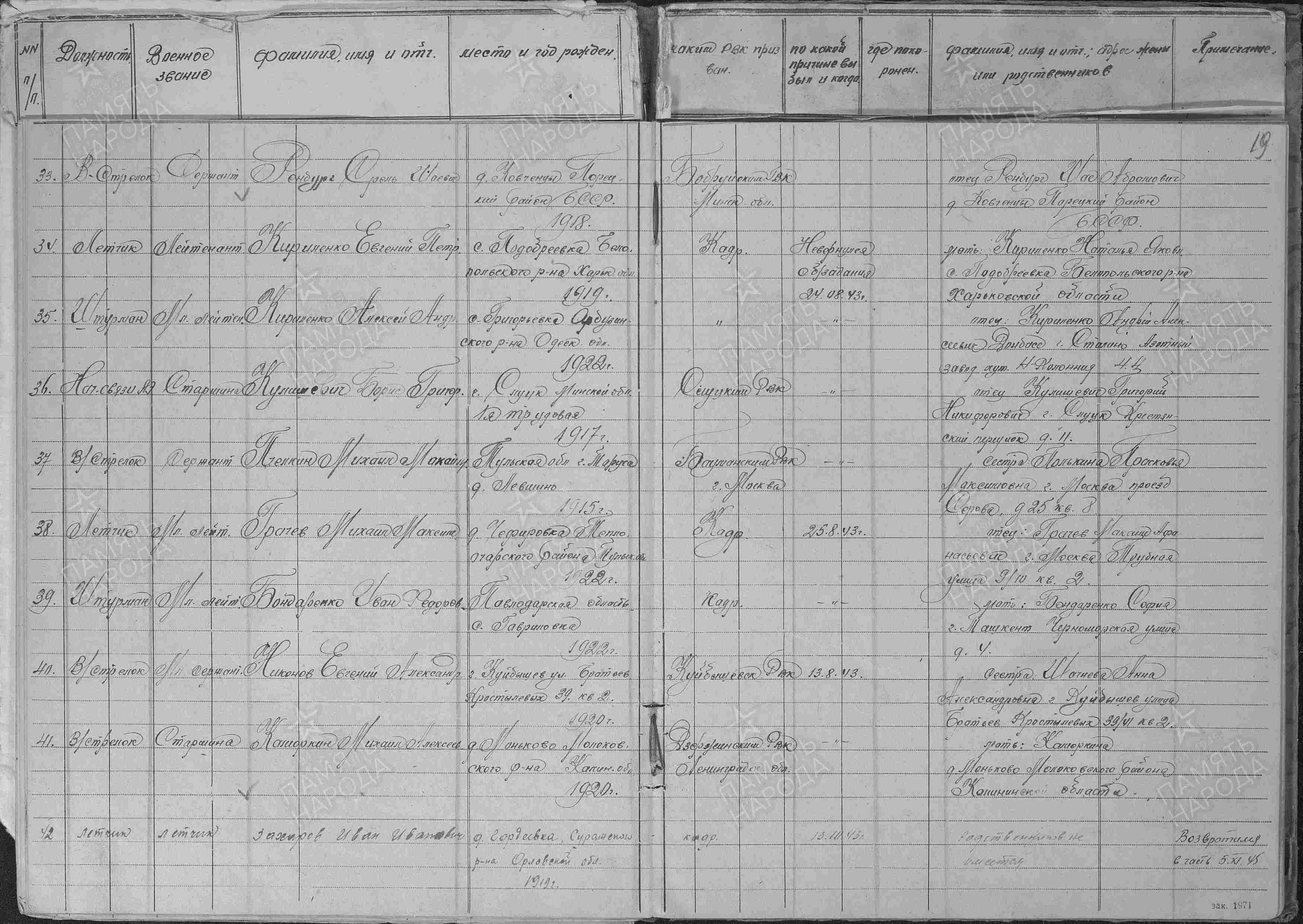 Данные из УПК (учётно - послужной карты, портал "ПАМЯТЬ НАРОДА").