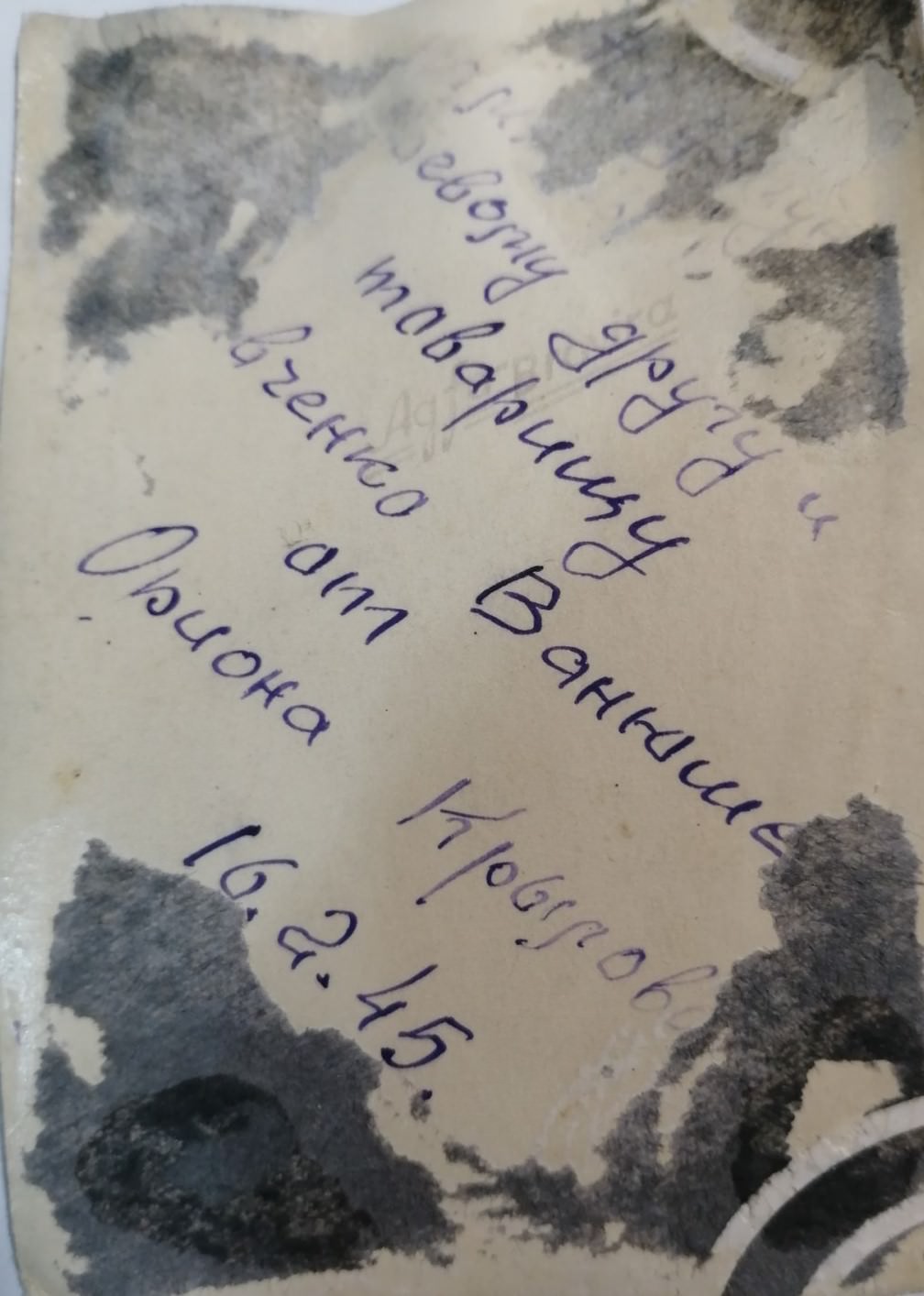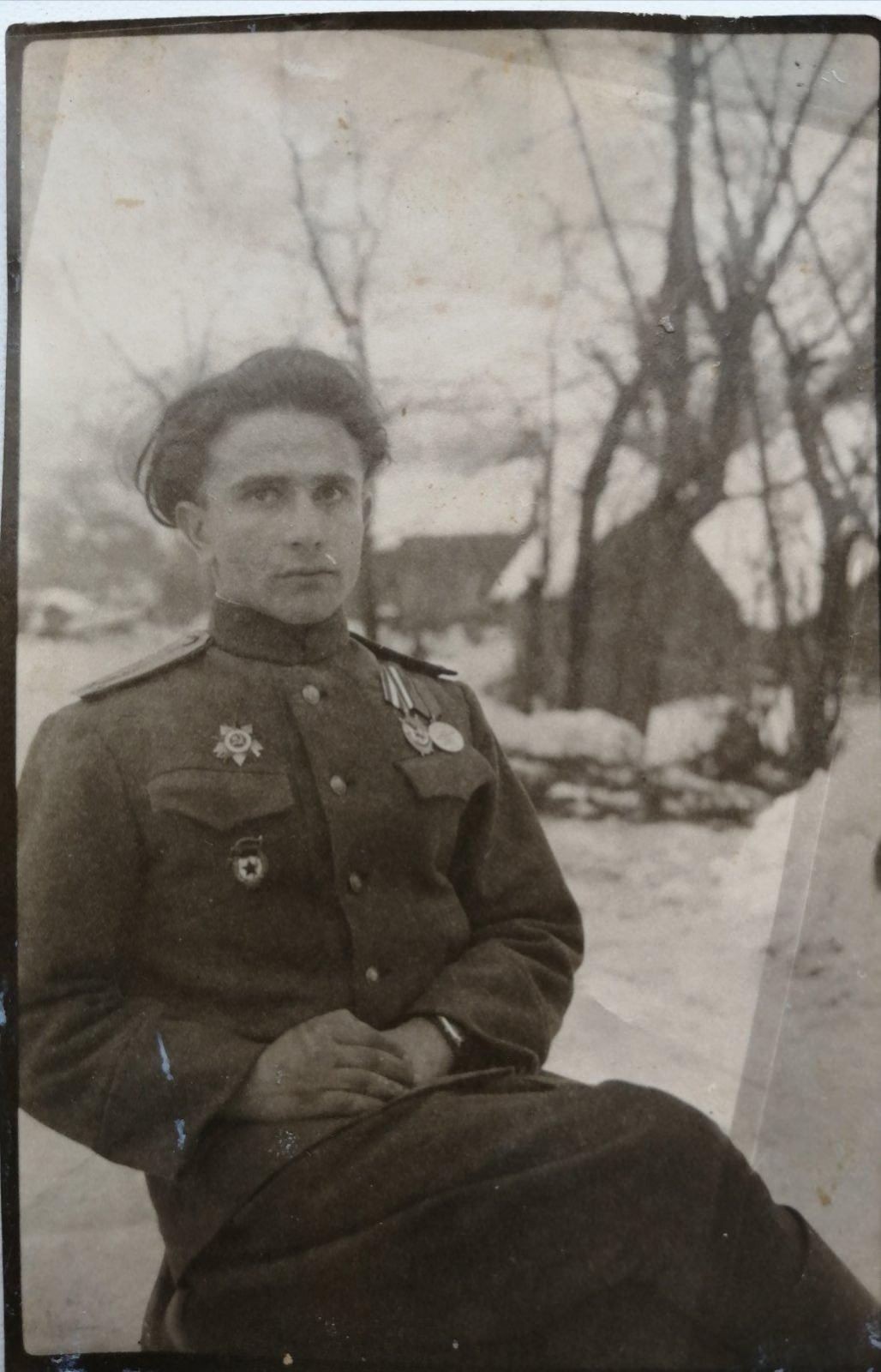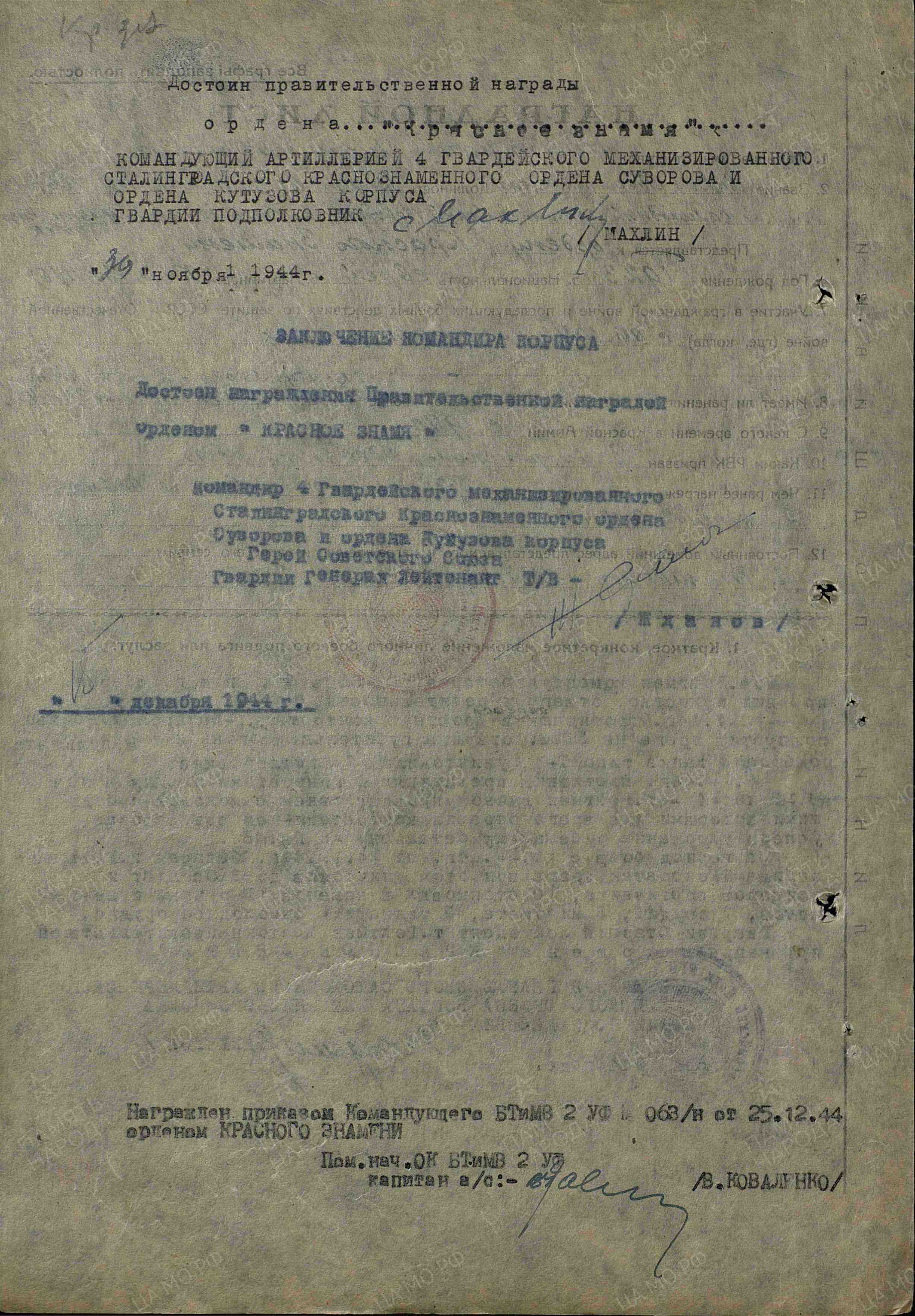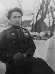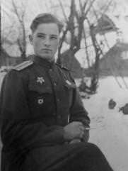 Командир батареи 292 гвардейского самоходного артиллерийского Новобугского ордена Богдана Хмельницкого полка, 4 гвардейского механизированного Сталинградского Краснознамённого орденов Суворова и Кутузова корпуса, 2 Украинского фронта (1945).