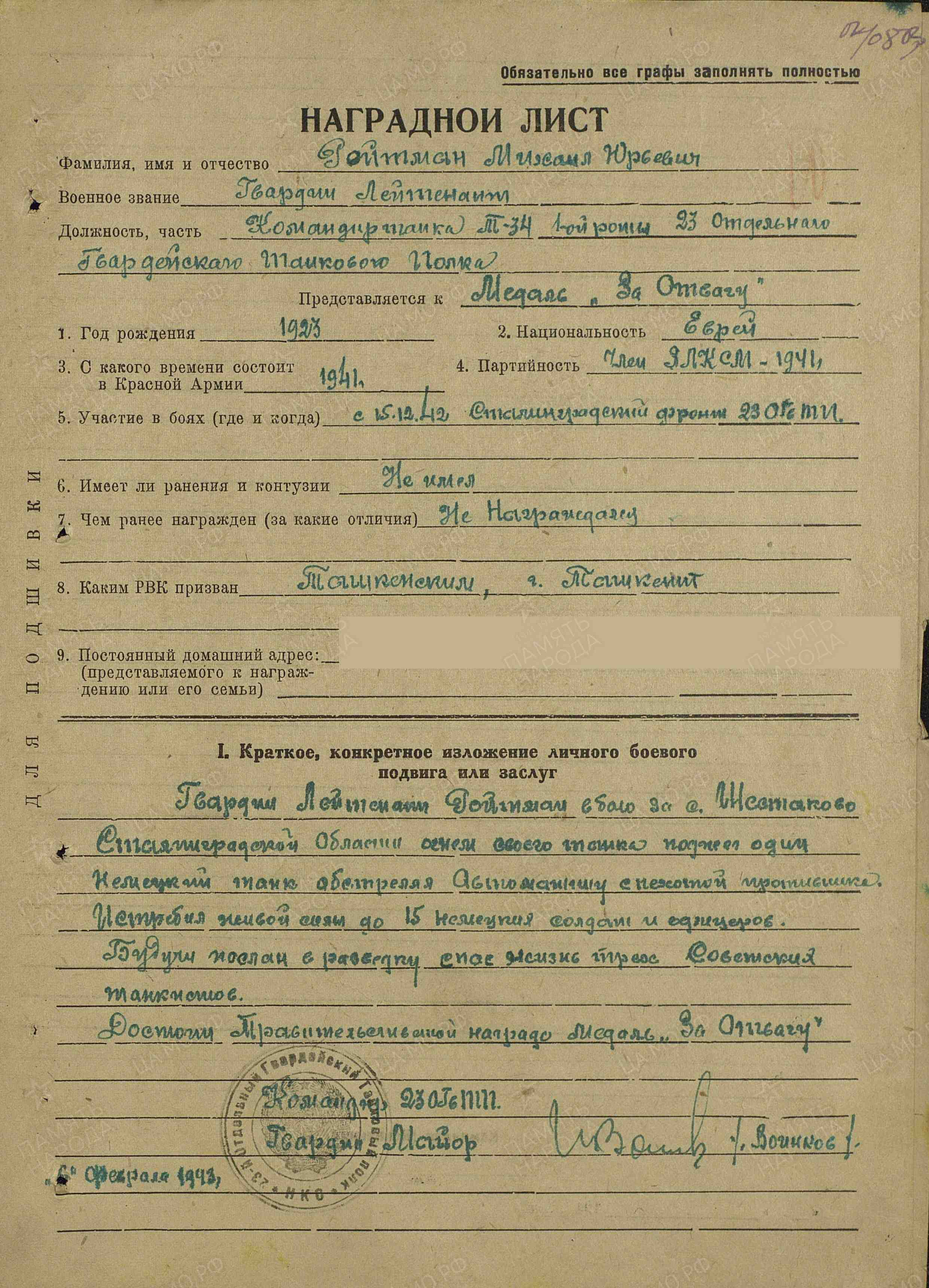 3. ЛИЧНАЯ СТРАНИЦА  на гвардии капитана РОЙТМАНА М. Ю.: