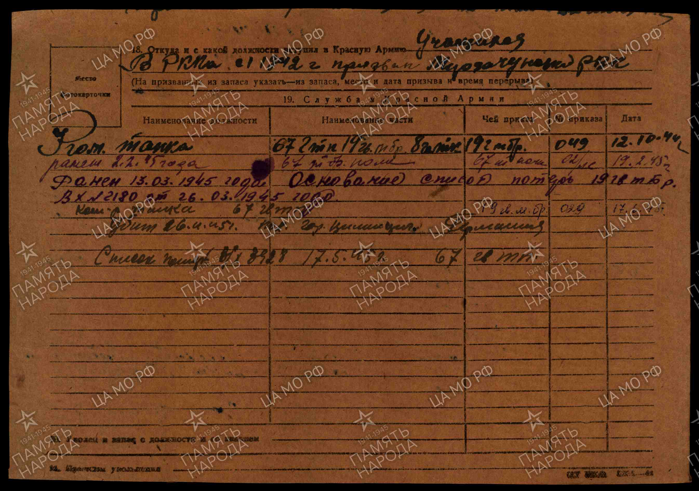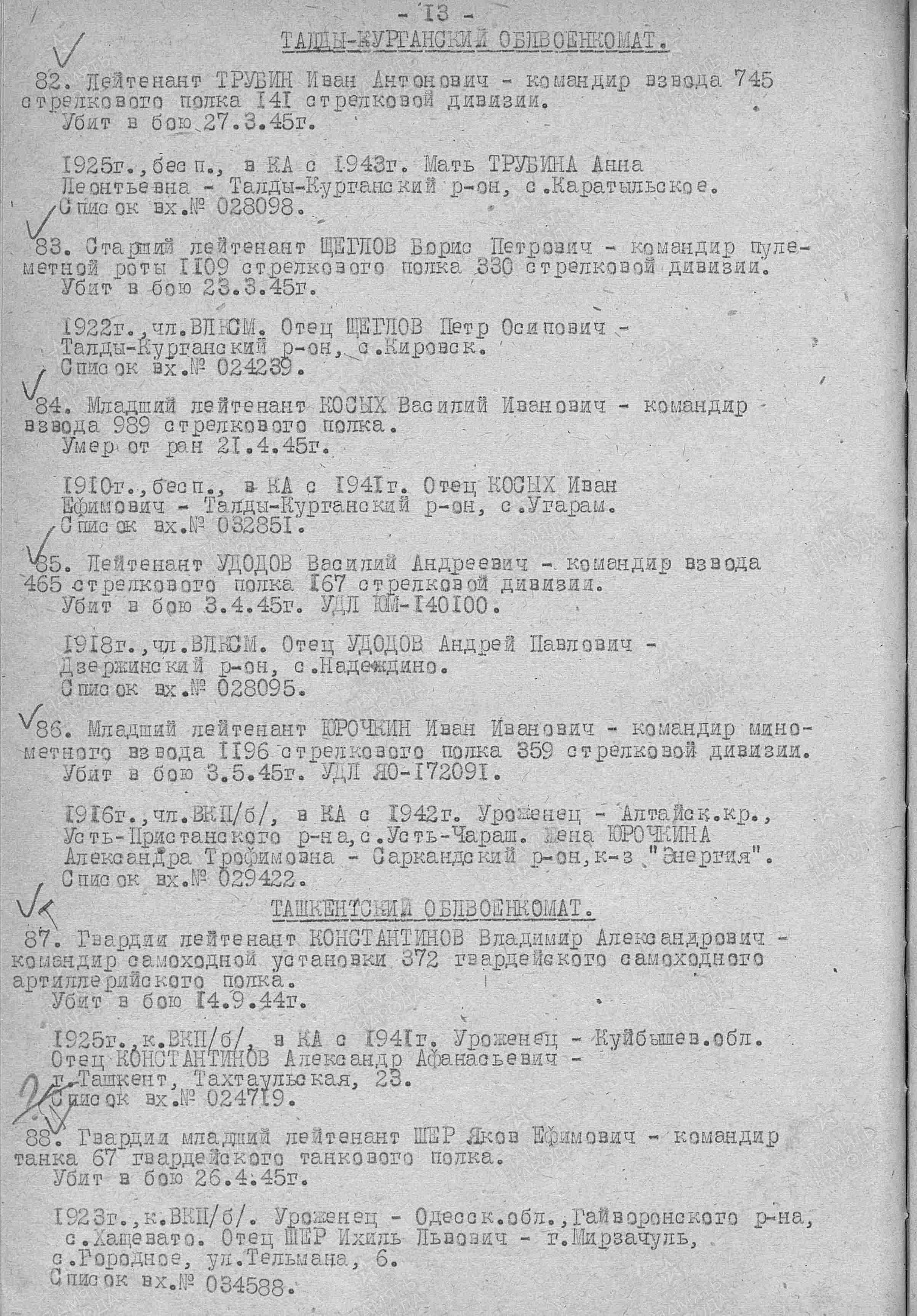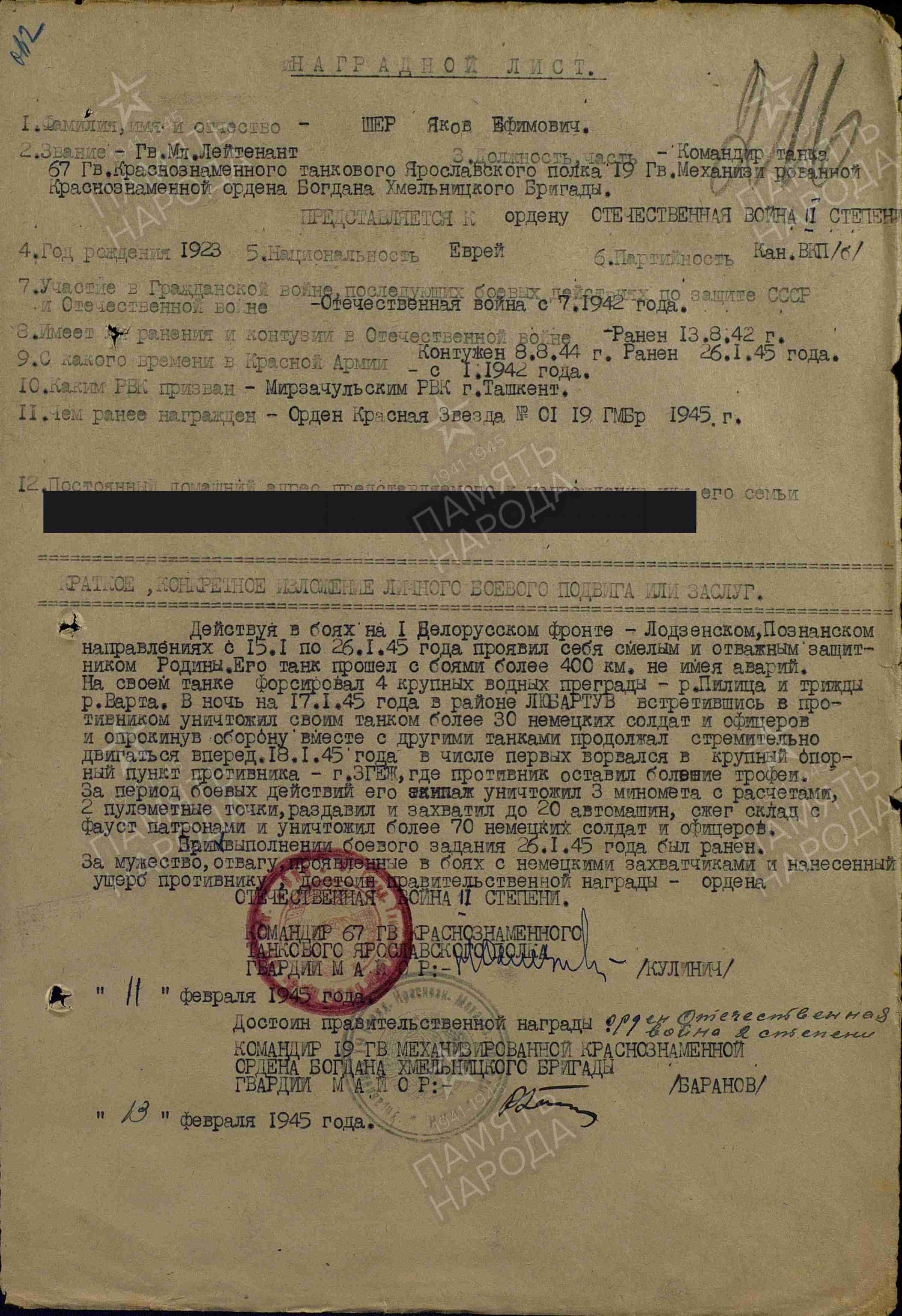 ЛИЧНАЯ СТРАНИЦА на лейтенанта Шер Я.Е.: