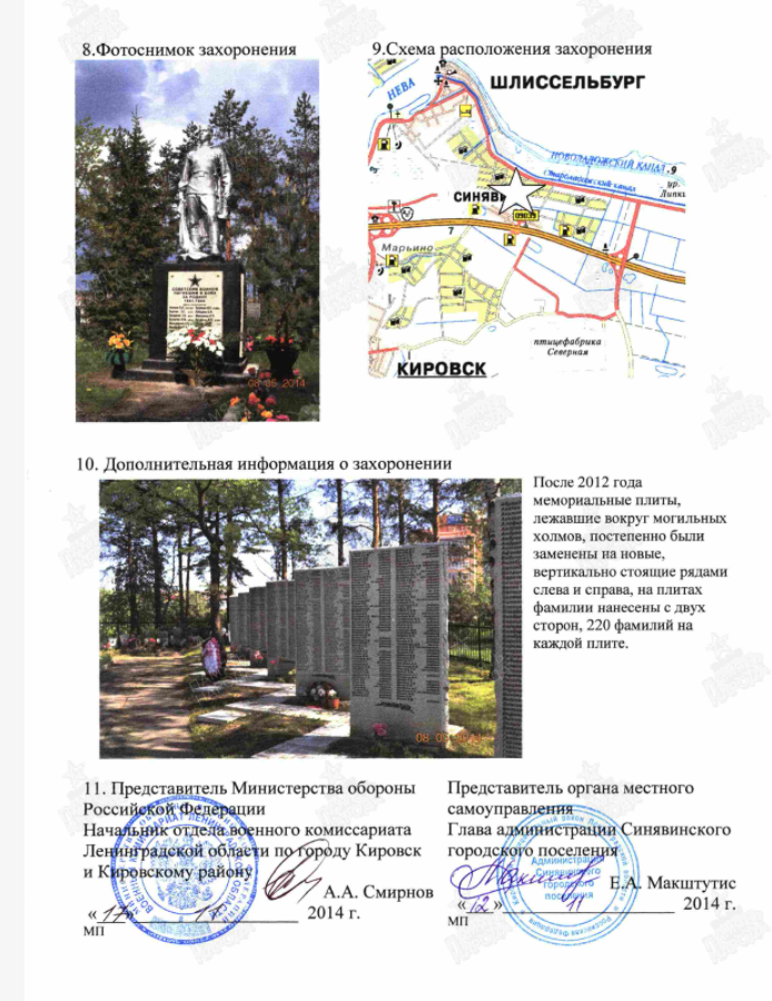 "Мой дядя Арон, дома его звали Алик, родился в 1922 г. Принимал участие в подпольном коммунистическом движении в Латвии, комсомолец, в 1940-1941 гг. был бойцом батальона рабочей гвардии г. Лудза. Арон Шнеер в августе 1941 г. добровольцем вступил в Латышскую стрелковую дивизию, которая формировалась в Гороховецких лагерях Горьковской области. В декабре 1941 г. сражался за Москву, был ранен под Наро-Фоминском. После госпиталя был направлен в военное училище в Уфе, однако недоучив-шихся курсантов отправили на защиту Ленинграда. Командир взвода разведки, старший сержант Арон Шнеер погиб в бою 1-2 сентября 1942 г. у поселка Синявино Мгинского района Ленинградской области.".