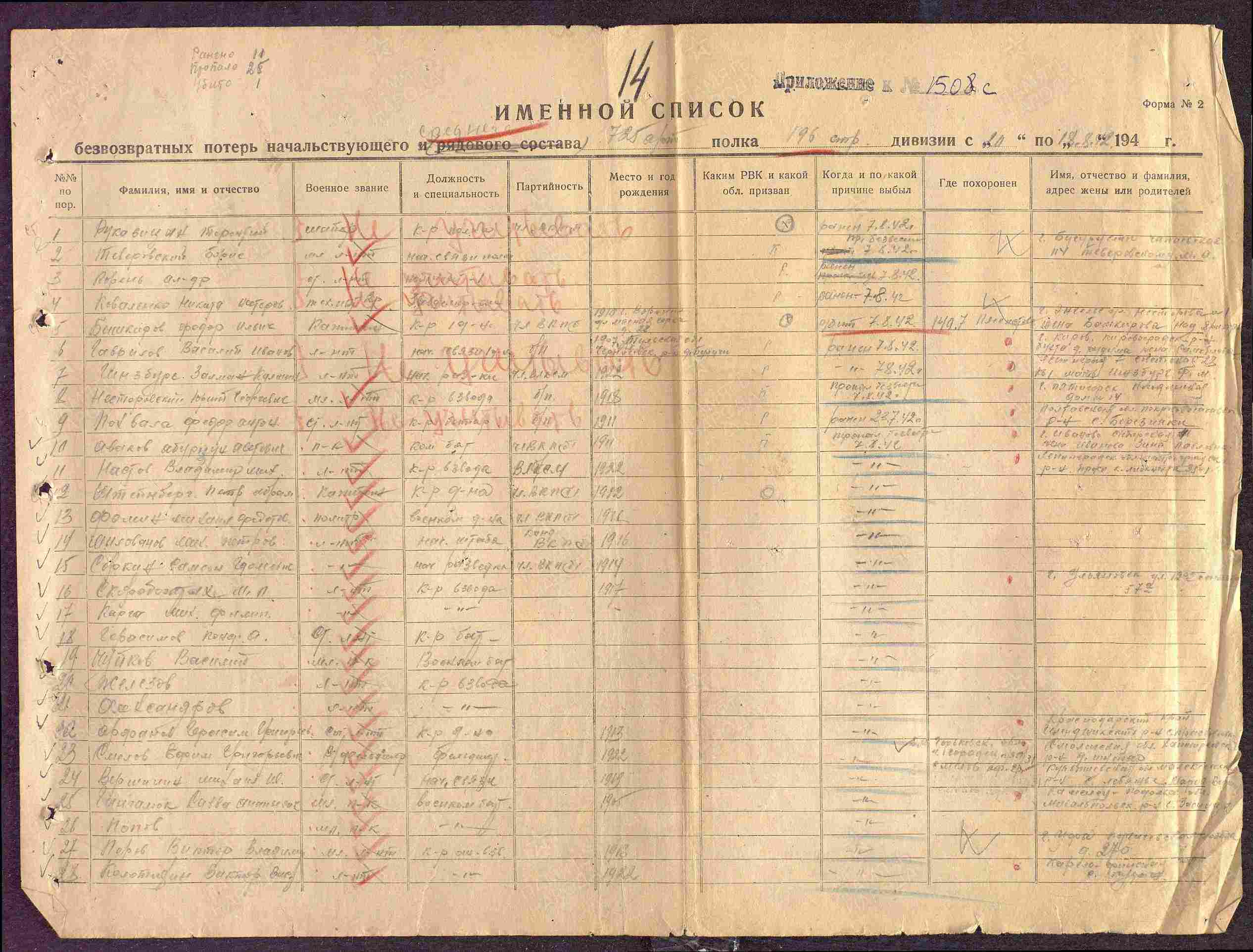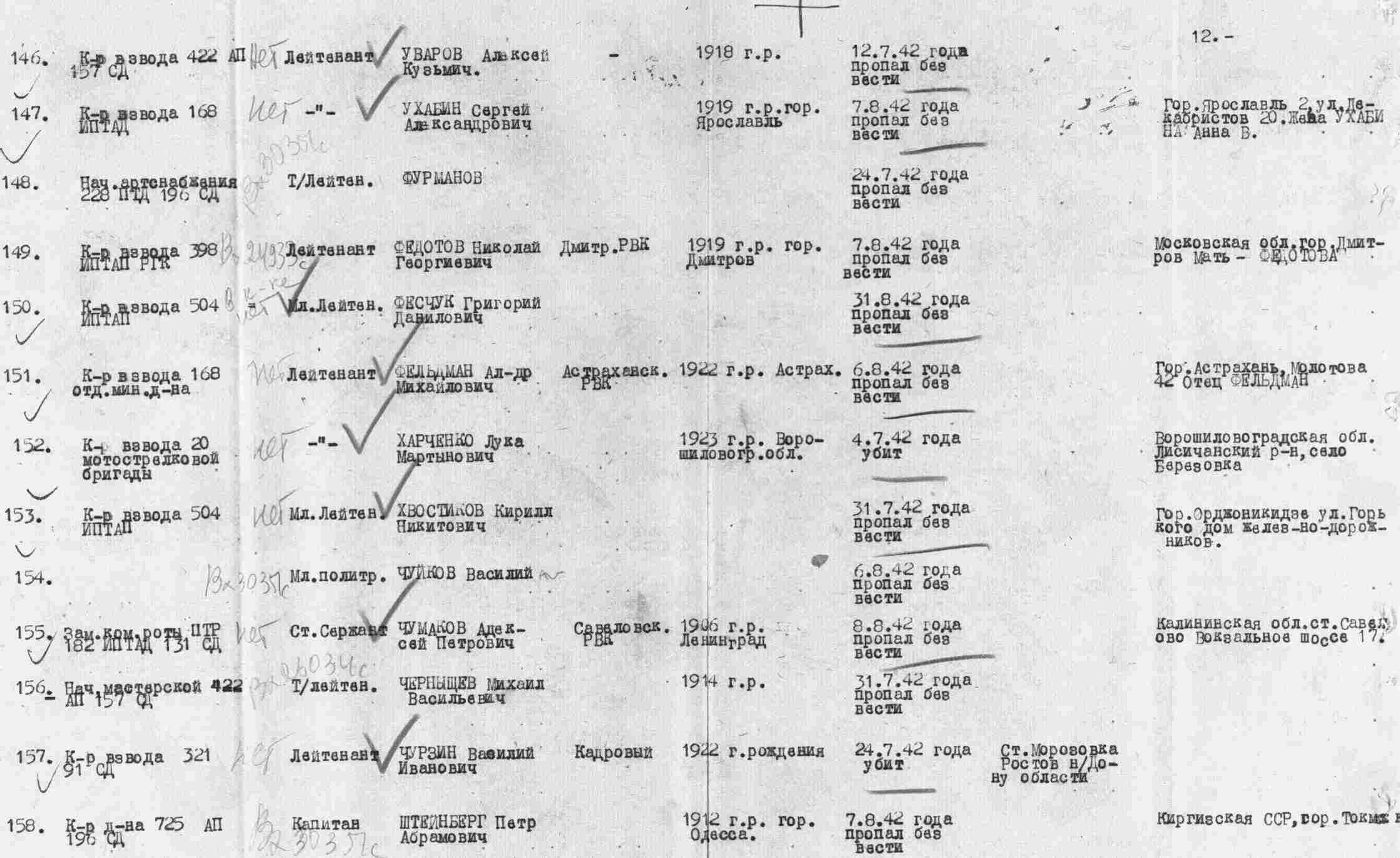 Данные из УПК (учётно - послужной карты, портал "ПАМЯТЬ НАРОДА").