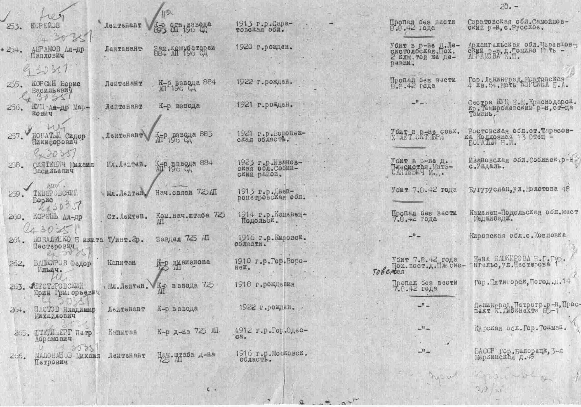 - краткая информация из "Списка евреев - военнослужащих артиллеристов, в годы Великой Отечественной войны." ( https://clck.ru/TnbTq ) - сотрудника проекта www.jewmil.com "ВОИНЫ - ЕВРЕИ" Геннадия Чернакова.