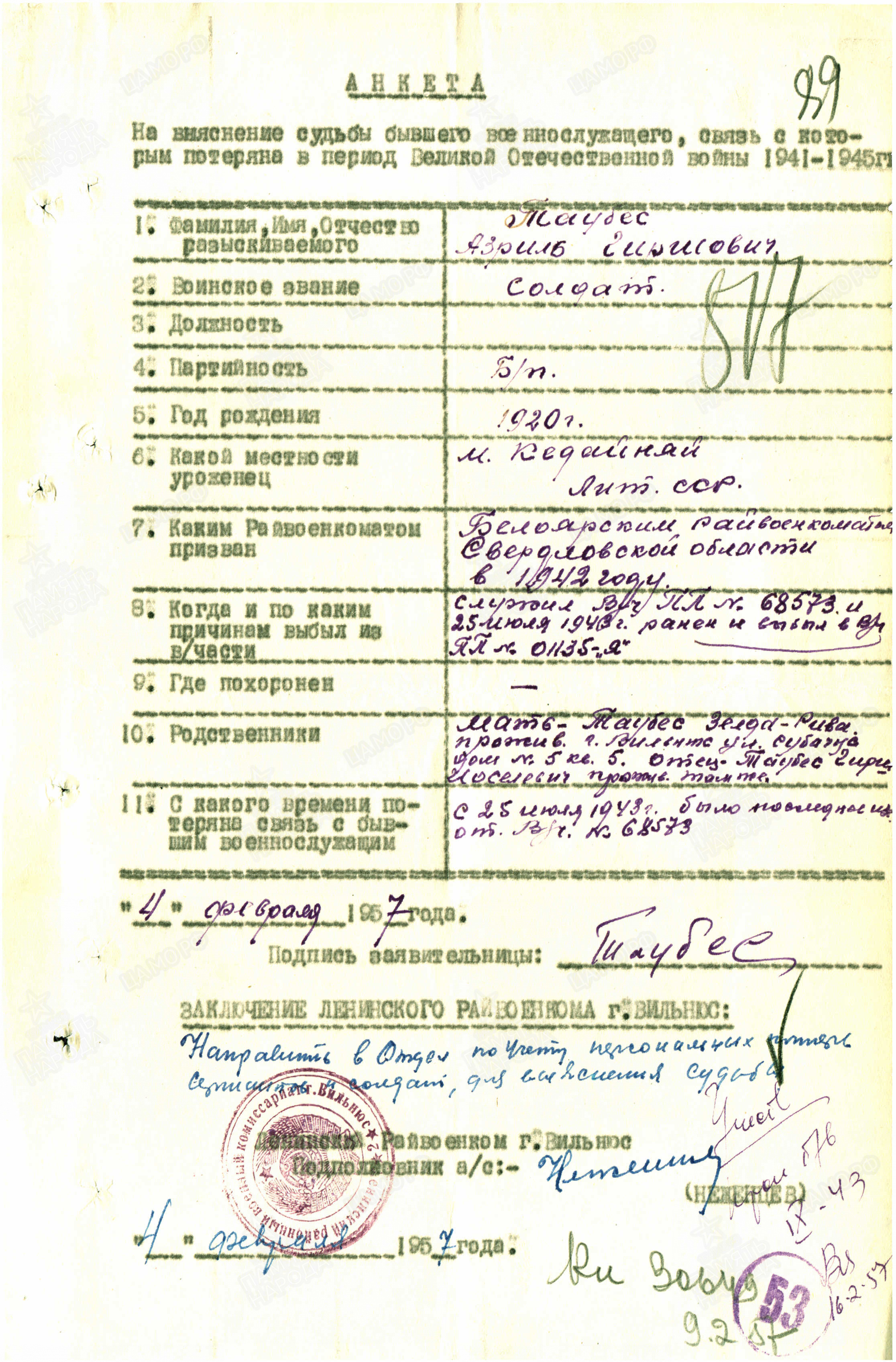 Получил ранения в боях под Орлом. Пропал без вести, по пути в медсанбат.