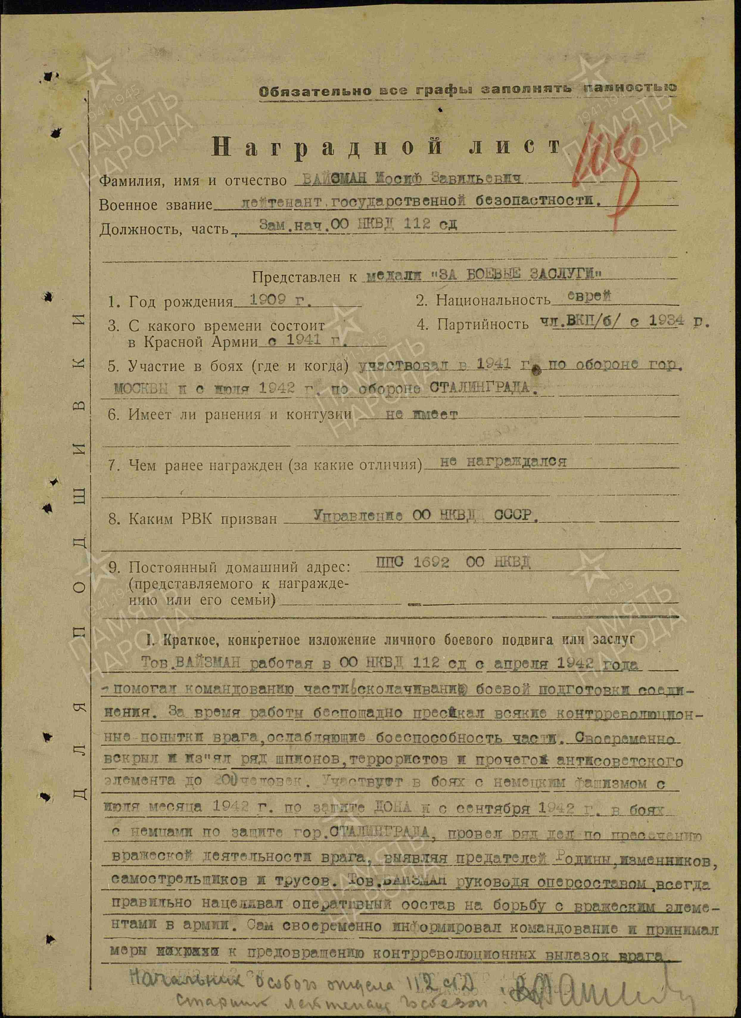 Заместитель начальника Особого Отдела НКВДЯ 112-й стрелковой дивизии.