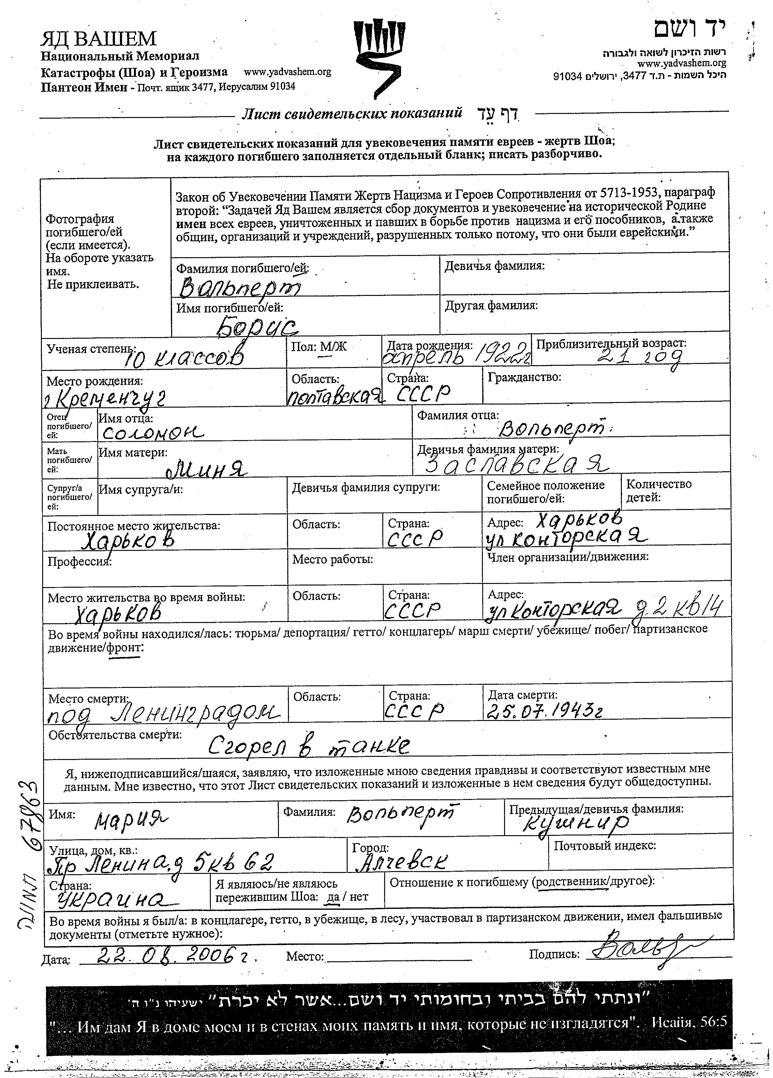 ЛИЧНАЯ СТРАНИЦА на ст. лейтенанта Вольперта Б.С.: