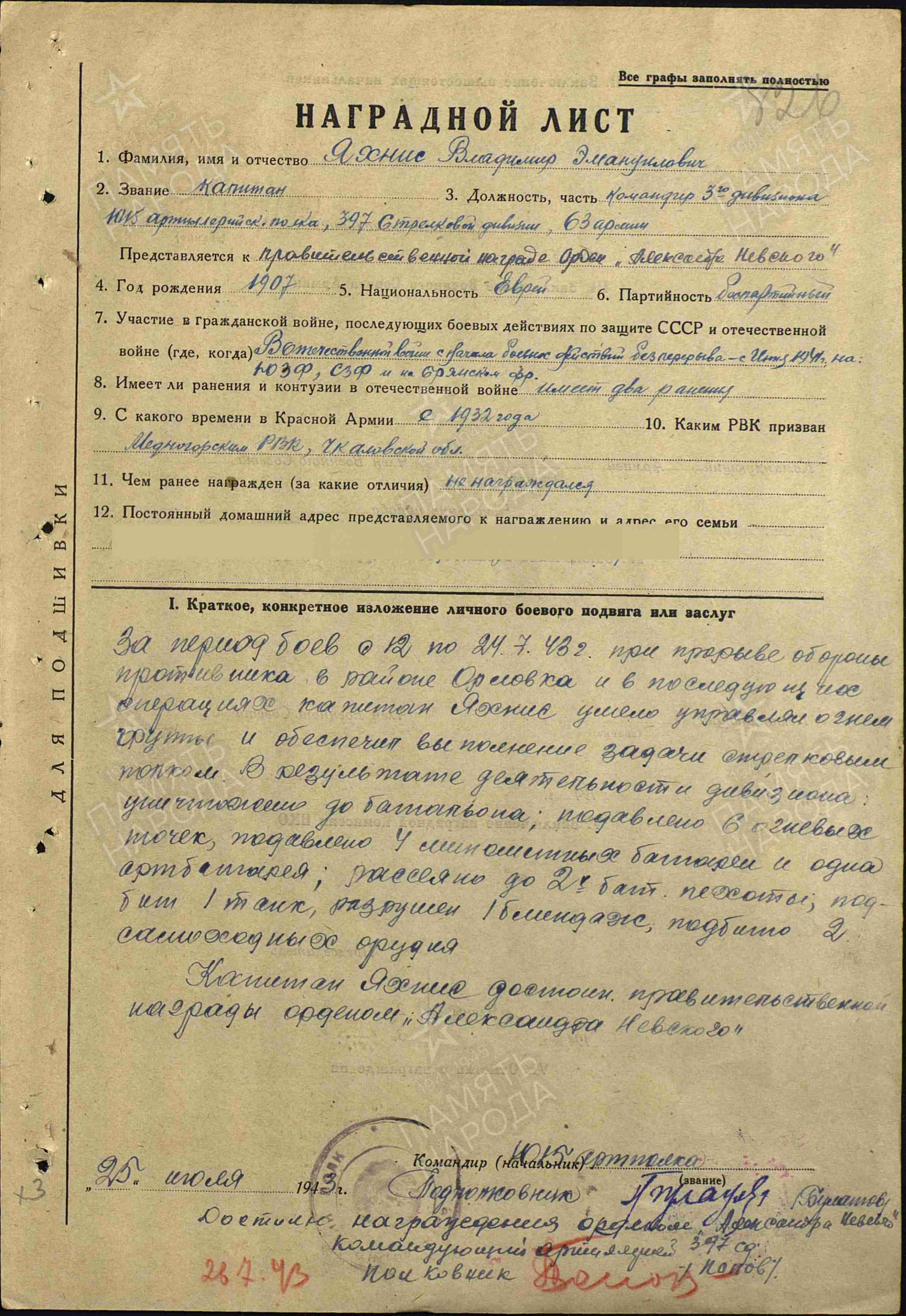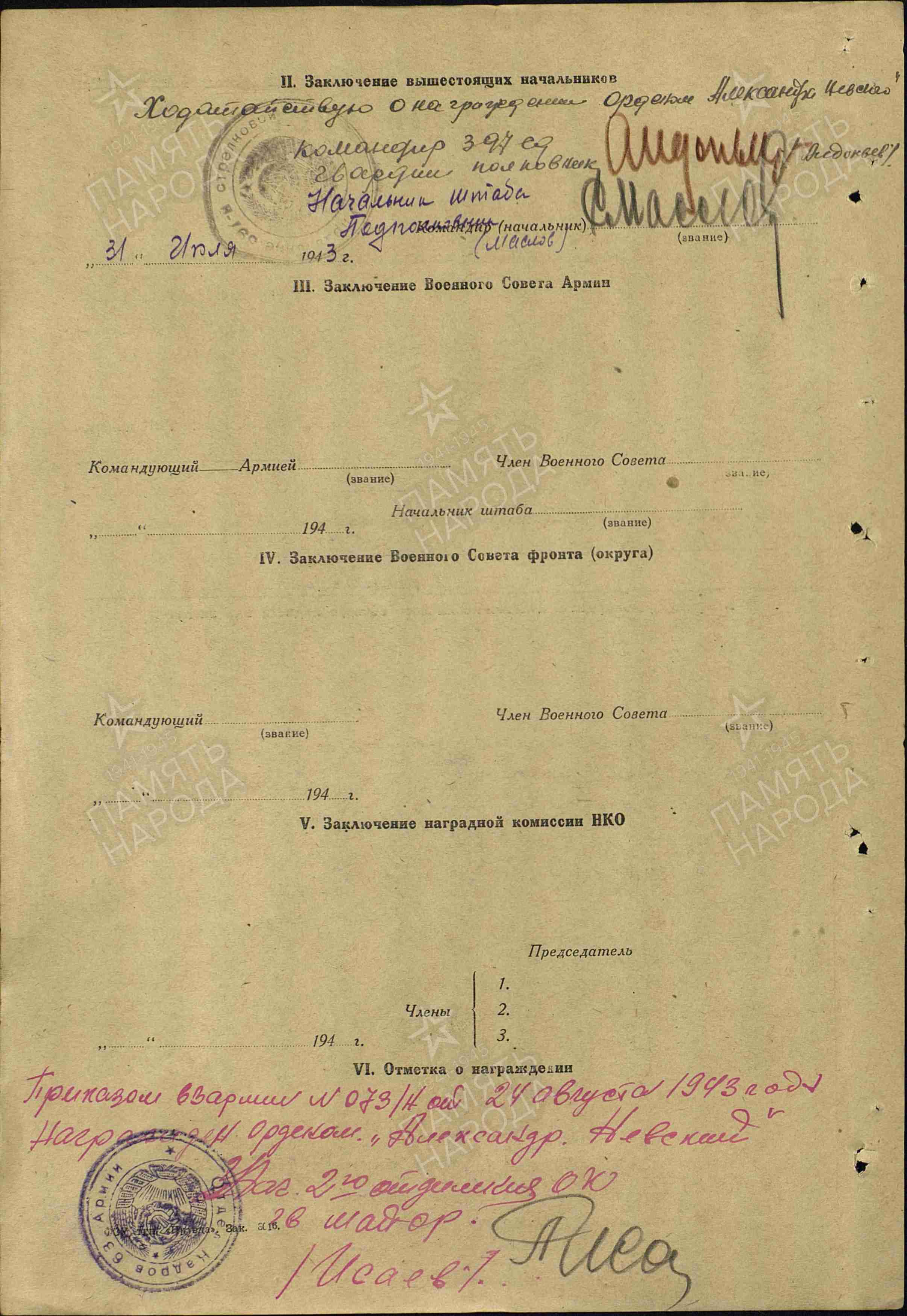 -  краткая информация - из списка "Еврейские офицеры Красной Армии, награждённые орденом Александра Невского в 1941 - 1945" ( базовый список 735 имён) - автор Борис Хейфец ( https://clck.ru/NEqdt ); 70 имён, в базовый список, добавил -сотрудник проекта www.jewmil.com  "ВОИНЫ - ЕВРЕИ"  Григорий Койфман;