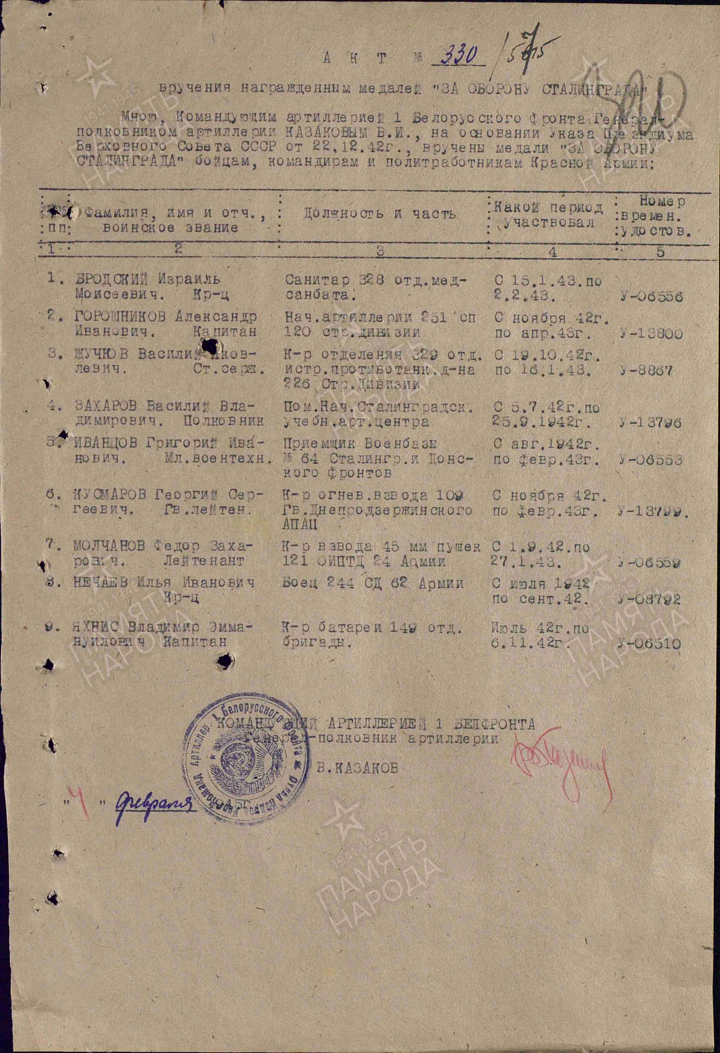 - краткая информация  из "Списка евреев - военнослужащих артиллеристов, в годы Великой Отечественной войны." (  https://clck.ru/TnbTq ) - сотрудника проекта www.jewmil.com   "ВОИНЫ - ЕВРЕИ" Геннадия Чернакова.