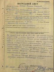 Ордена: "АЛЕКСАНДРА НЕВСКОГО" (08.1943), "ОТЕЧЕСТВЕННОЙ ВОЙНЫ" 1 (1985) СТЕПЕНИ, "КРАСНОЙ ЗВЕЗДЫ" (05.1946).
