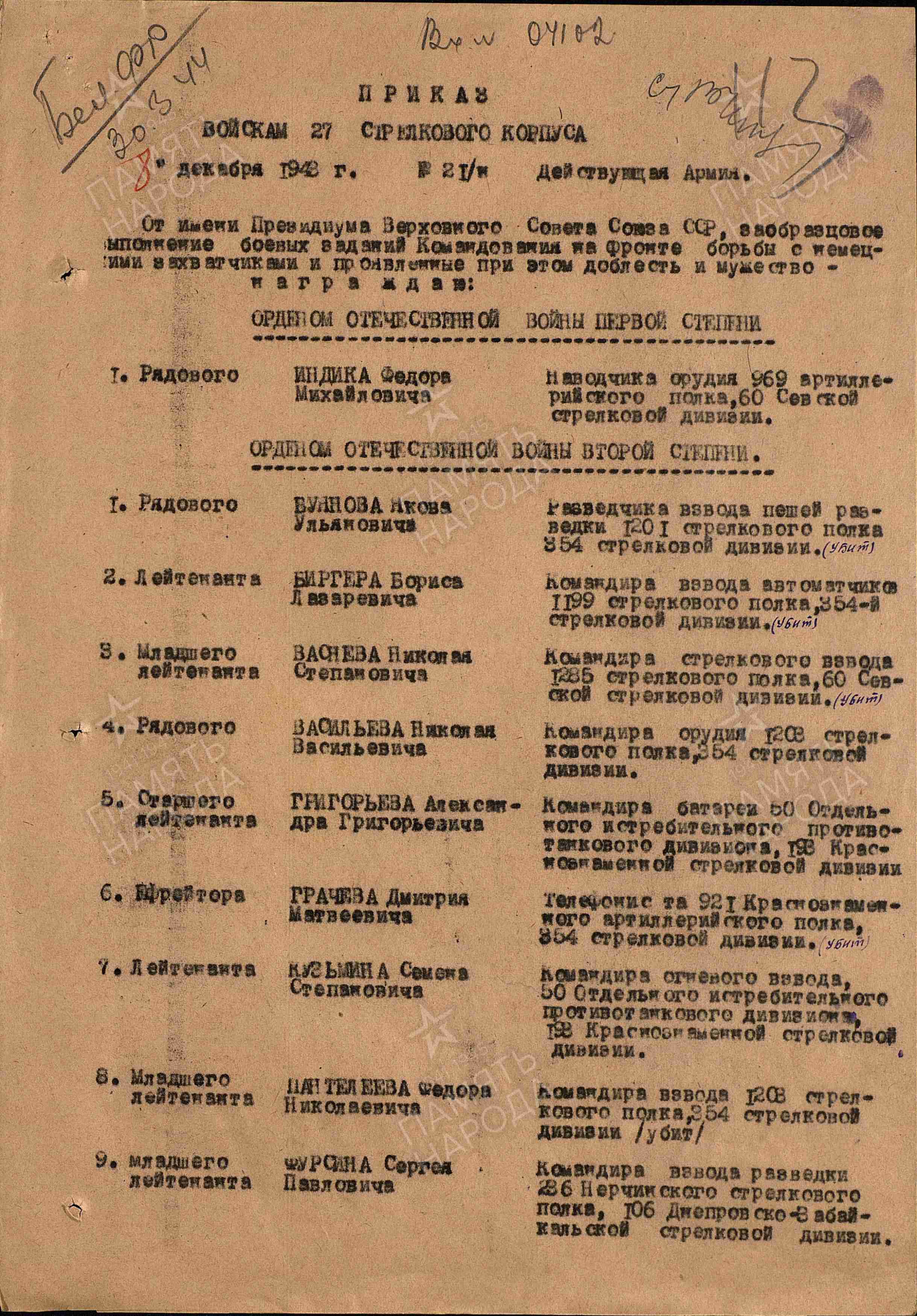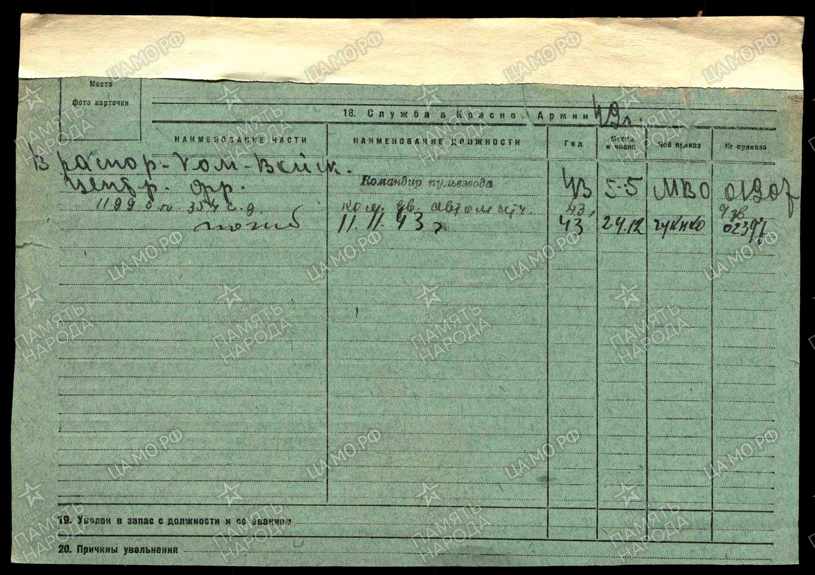 Командир взвода  роты автоматчиков 1199-го стрелкового полка 354-й стрелковой дивизии.
