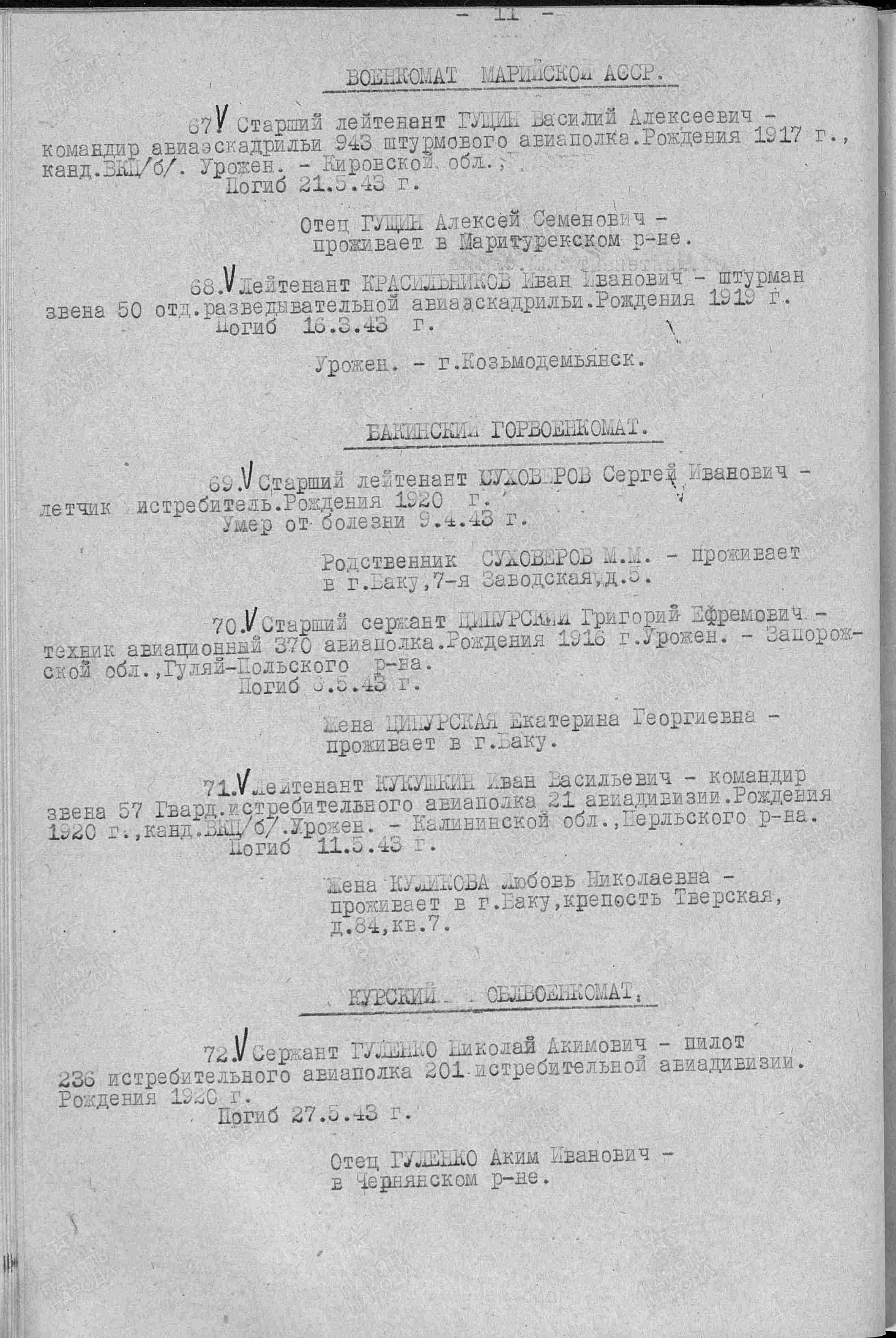 - краткая информация из "Списка евреев - военнослужащих лётного состава ВВС СССР, в годы Великой Отечественной войны." (https://clck.ru/PuMeu ) - сотрудников проекта www.jewmil.com "ВОИНЫ - ЕВРЕИ" Григория Койфмана, Геннадия Чернакова.