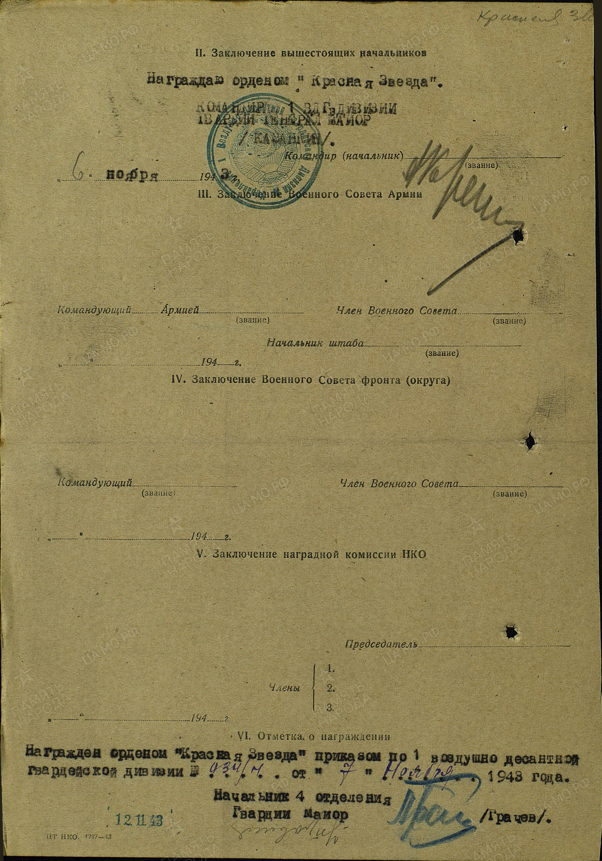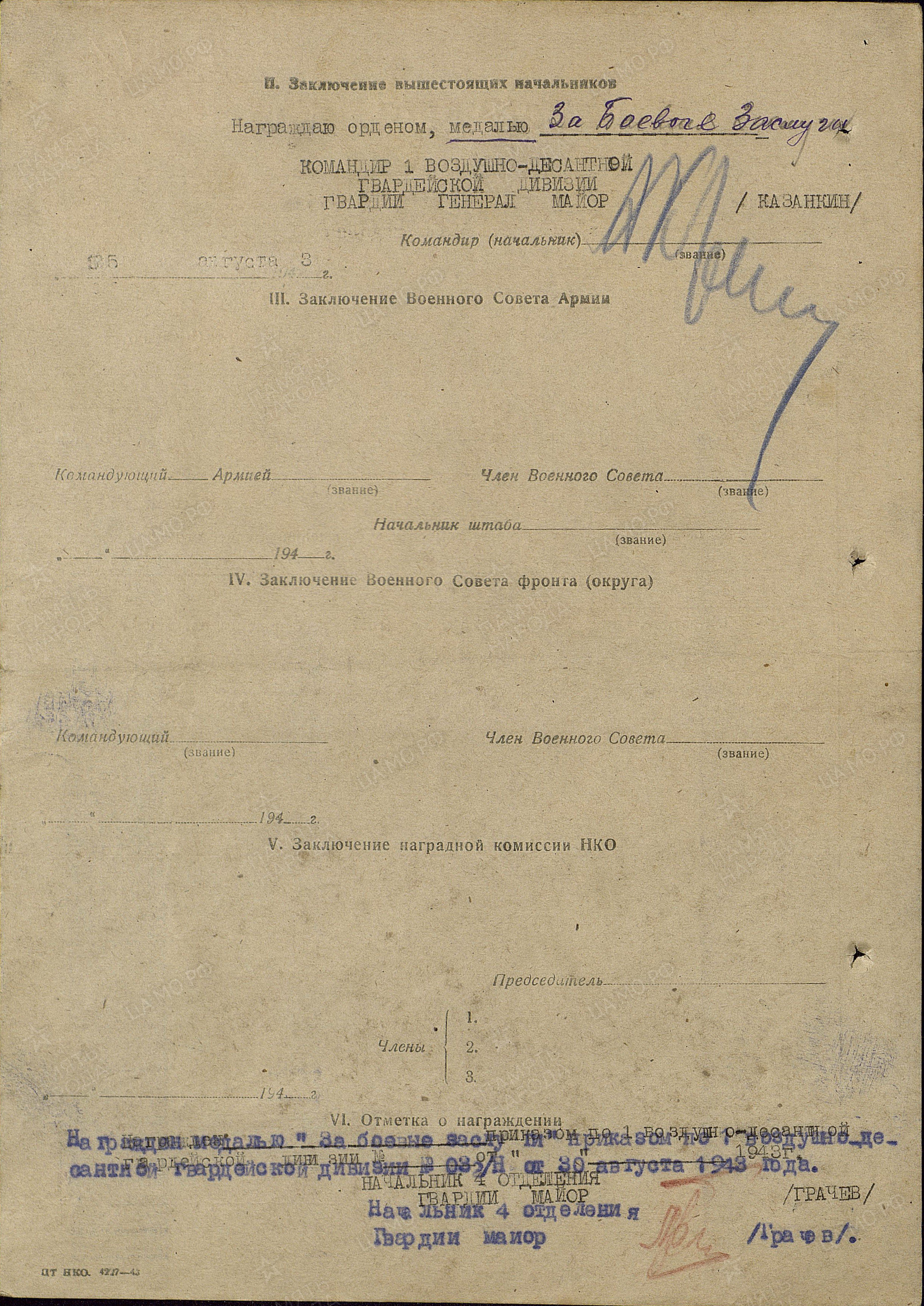 С января 1943 года служил в 1-й гвардейской воздушно-десантной дивизии.