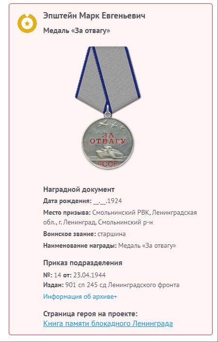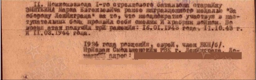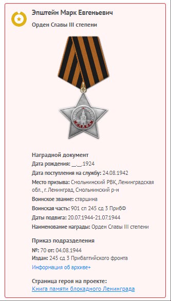 Из наградного листа на старшину Эпштейна Марка Евгеньевича: