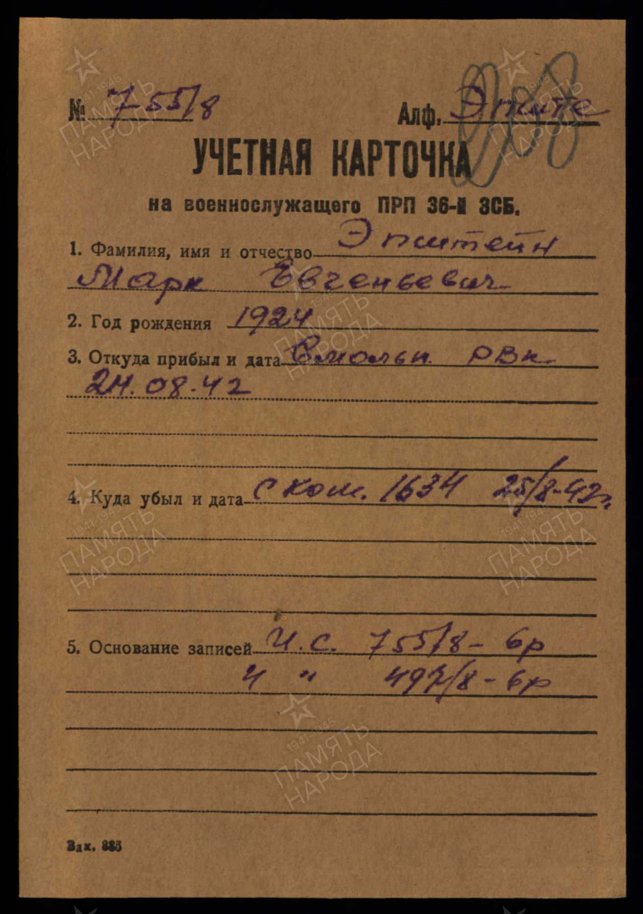Эпштейн Марк Евгеньевич родился в 1924 году в городе Ленинграде. Еврей.