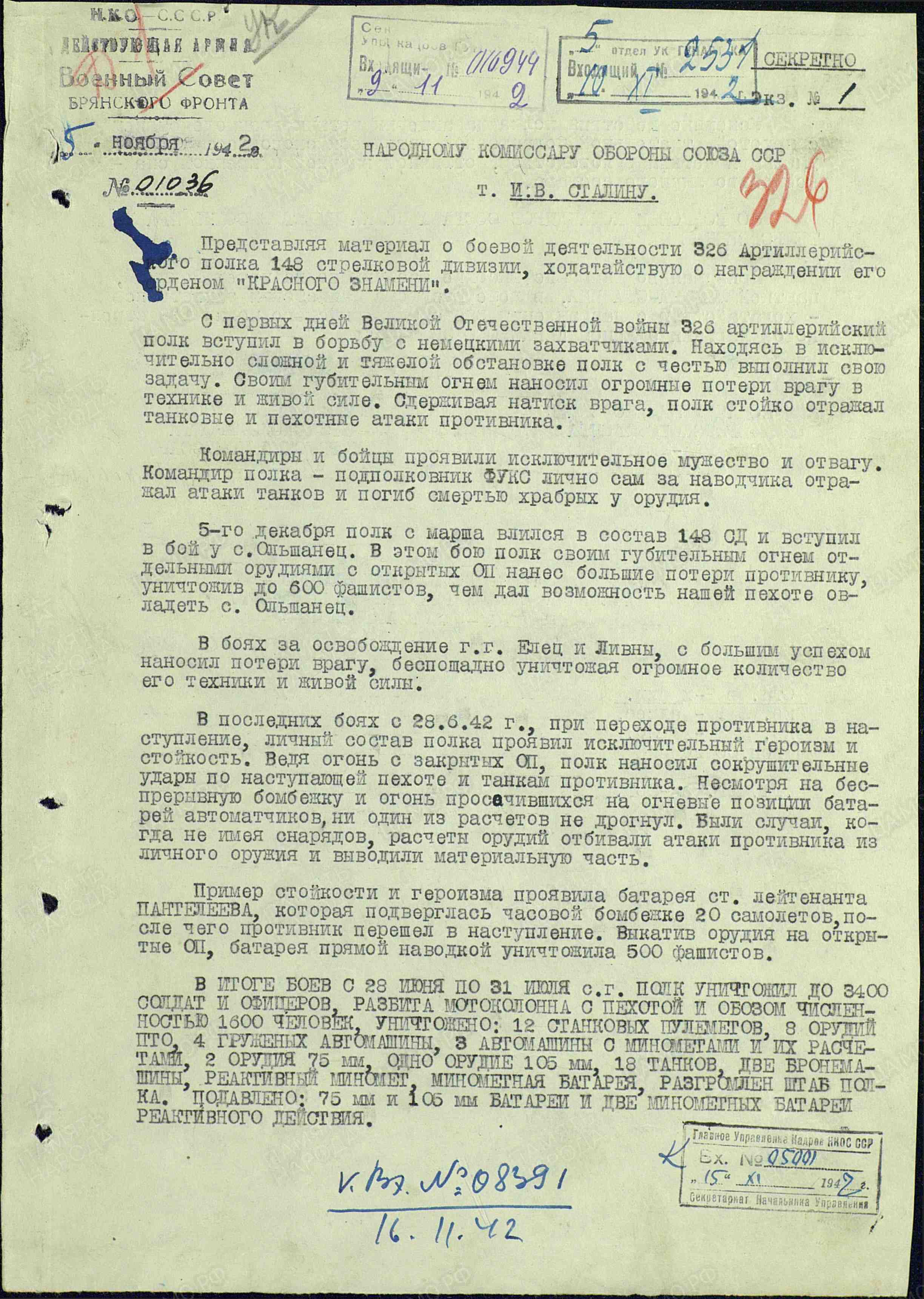 2. 326 артиллерийский полк ("Форум поисковых движений": http://forum.patriotcenter.ru/index.php?topic=34604.0 );