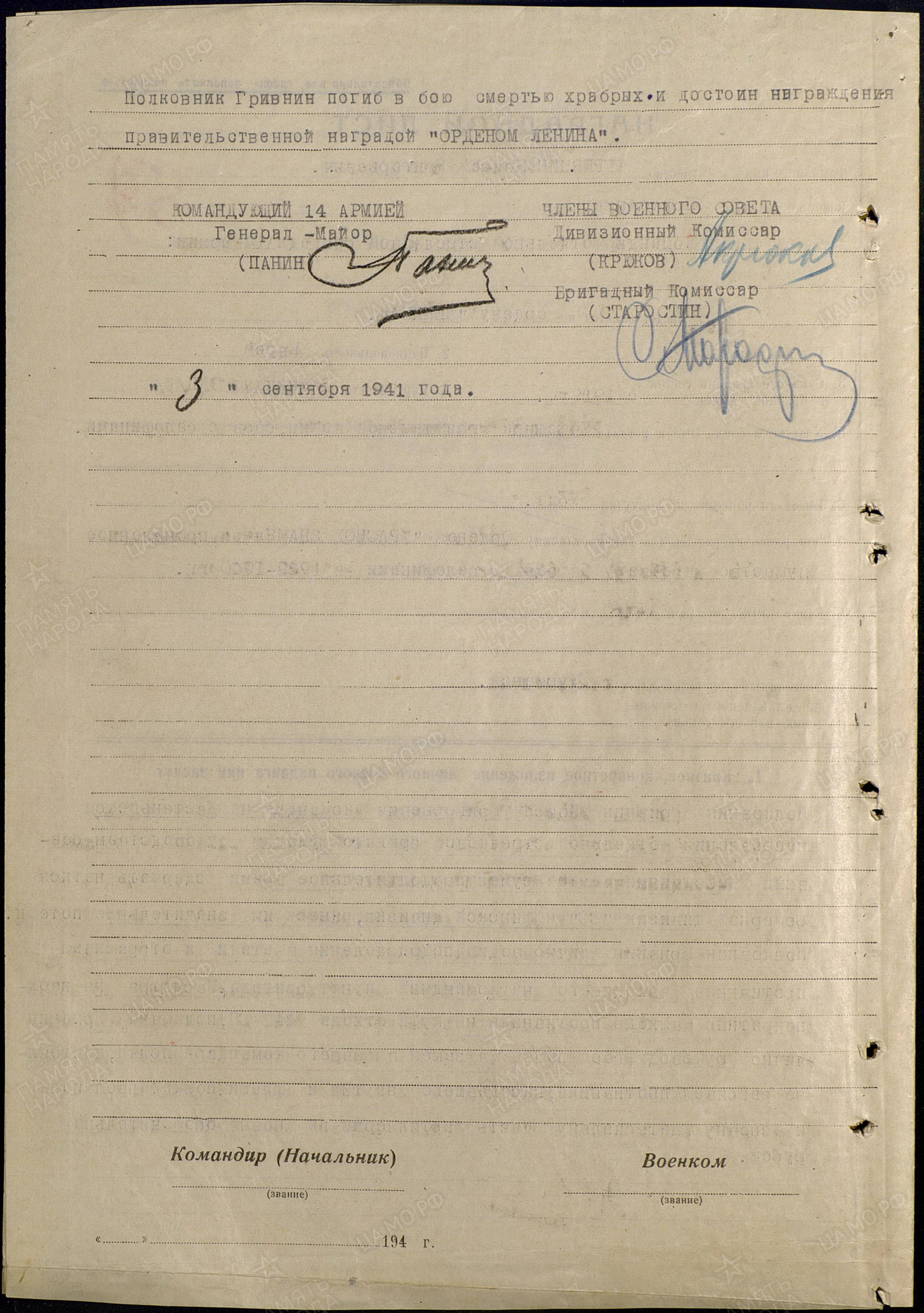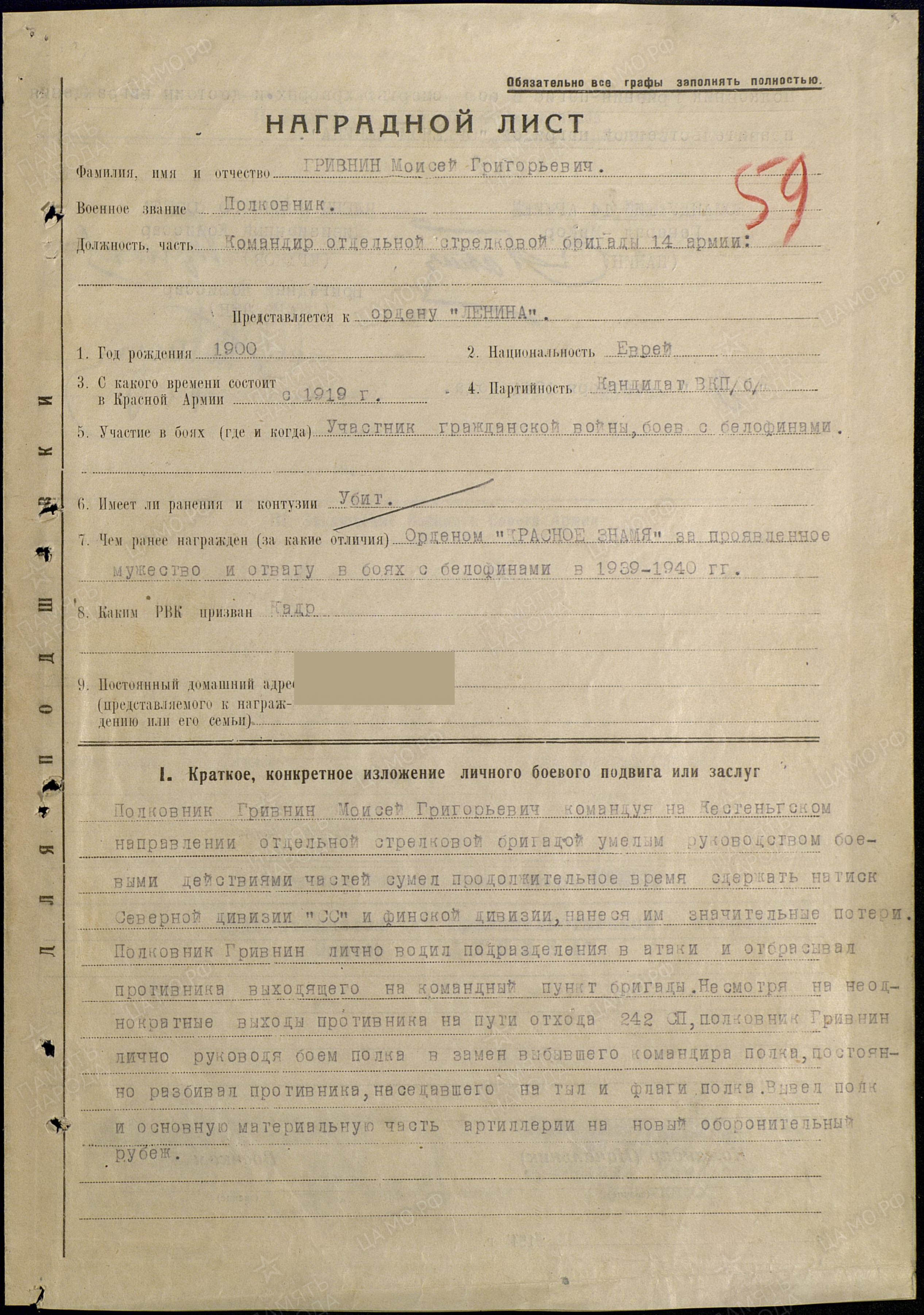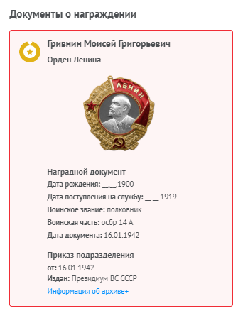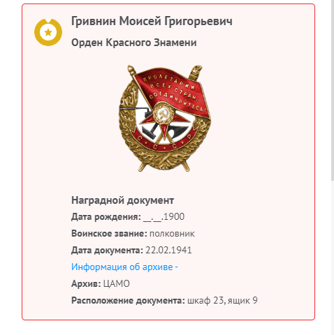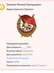 ГРИВНИН Моисей Григорьевич – Полковник (22.04.1940).