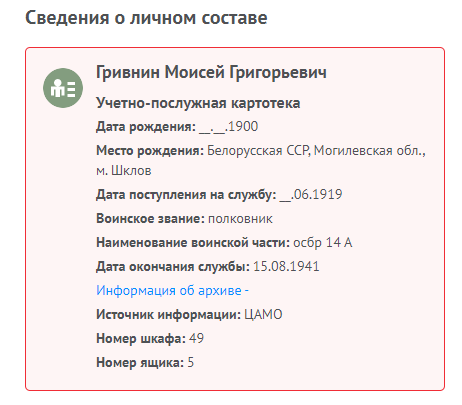 Биография из книги- Красная Армия. Полковники. 1935-1945.