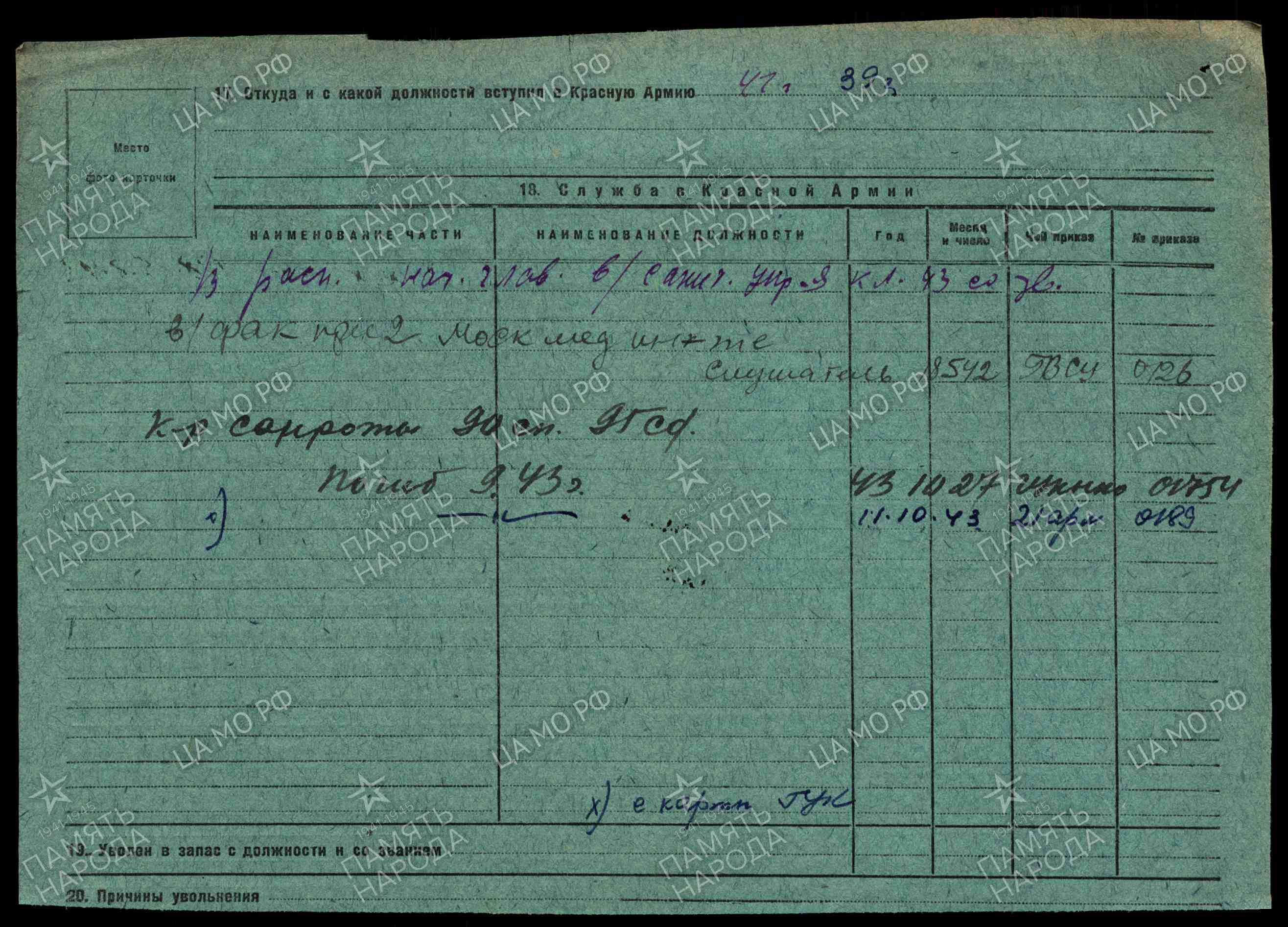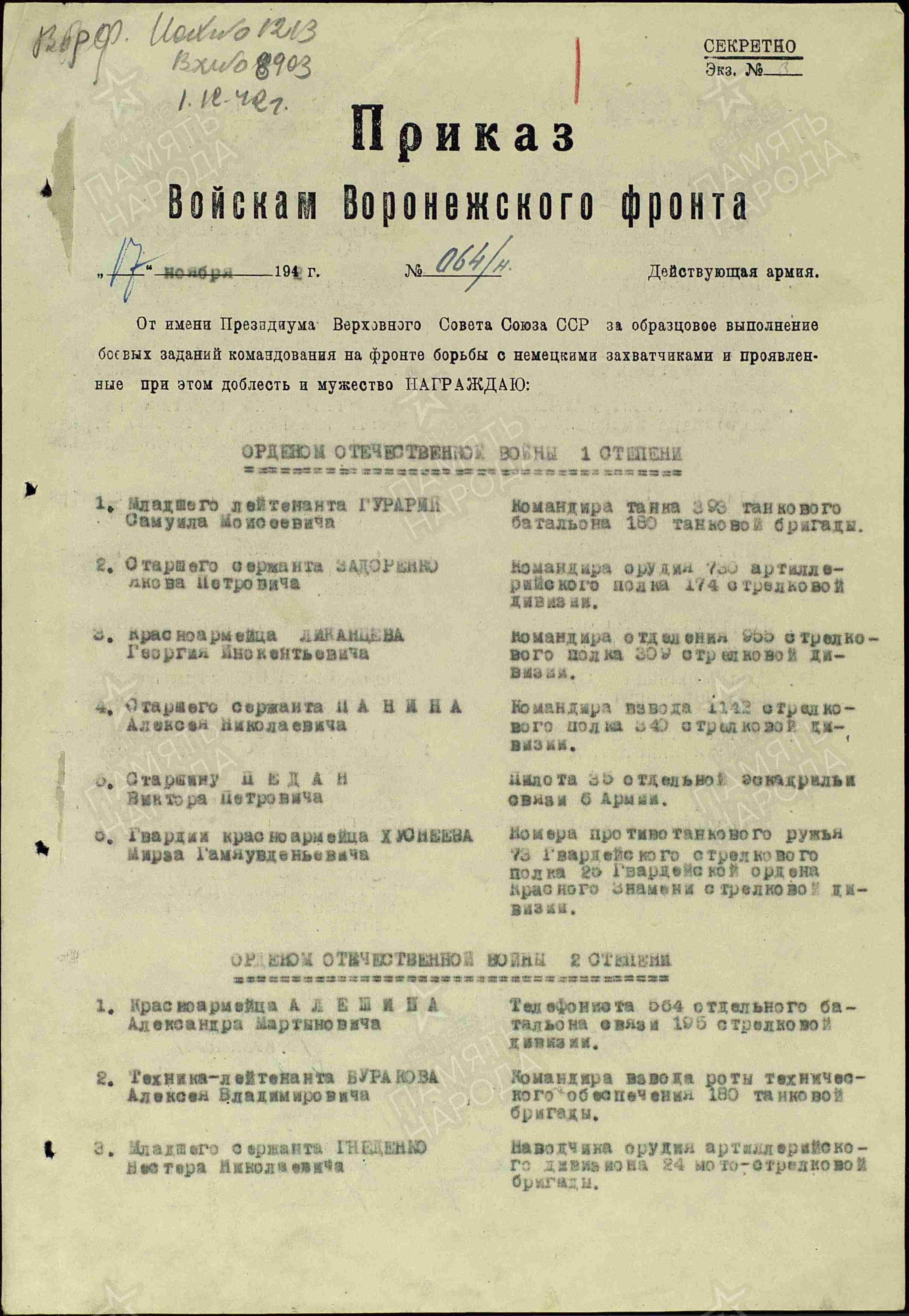 В боях ВОВ с лета 1942 года на Воронежском фронте.