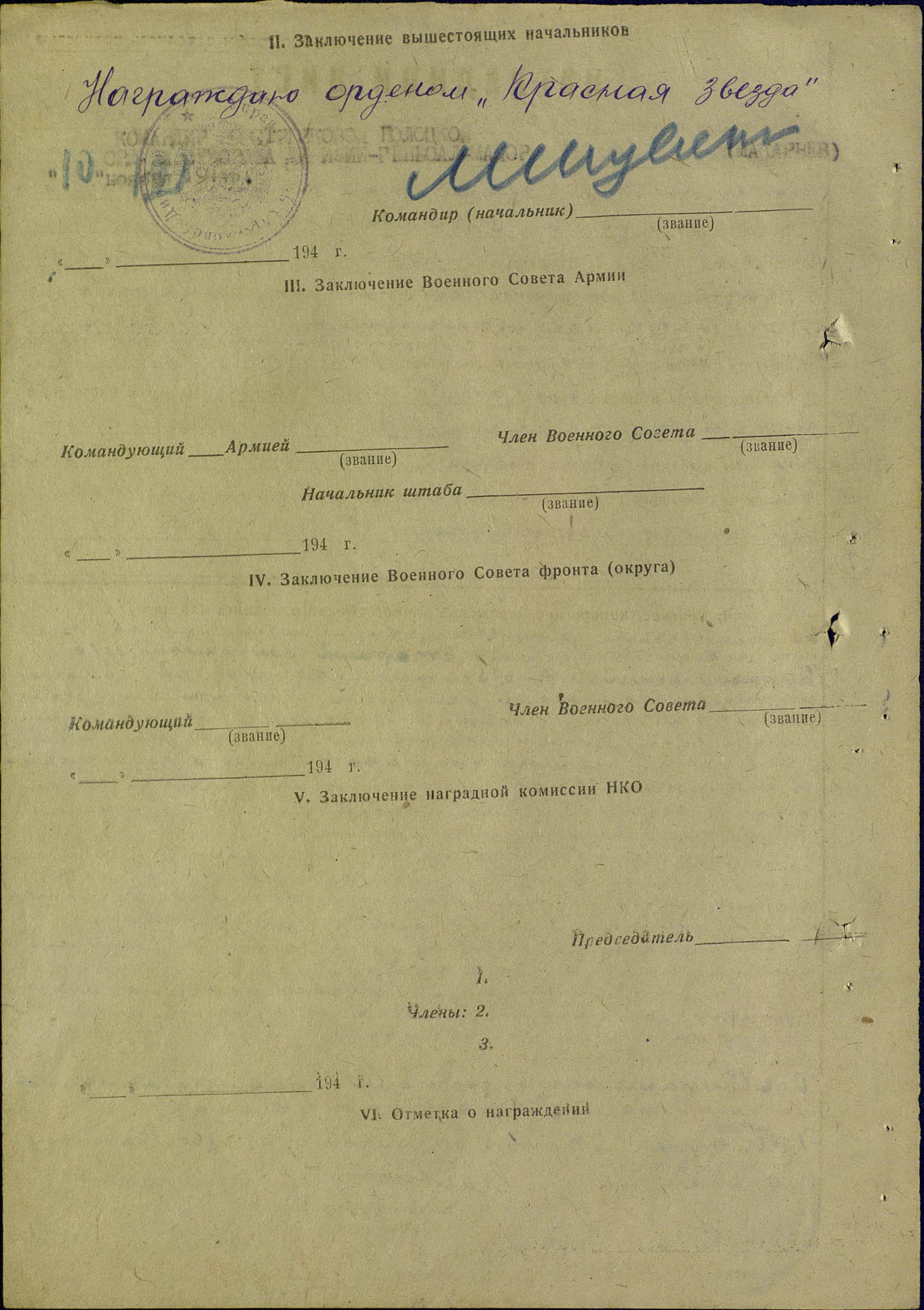 командир санитарного взвода, 58-го медицинского санитарного батальона, 29-й стрелковой дивизии
