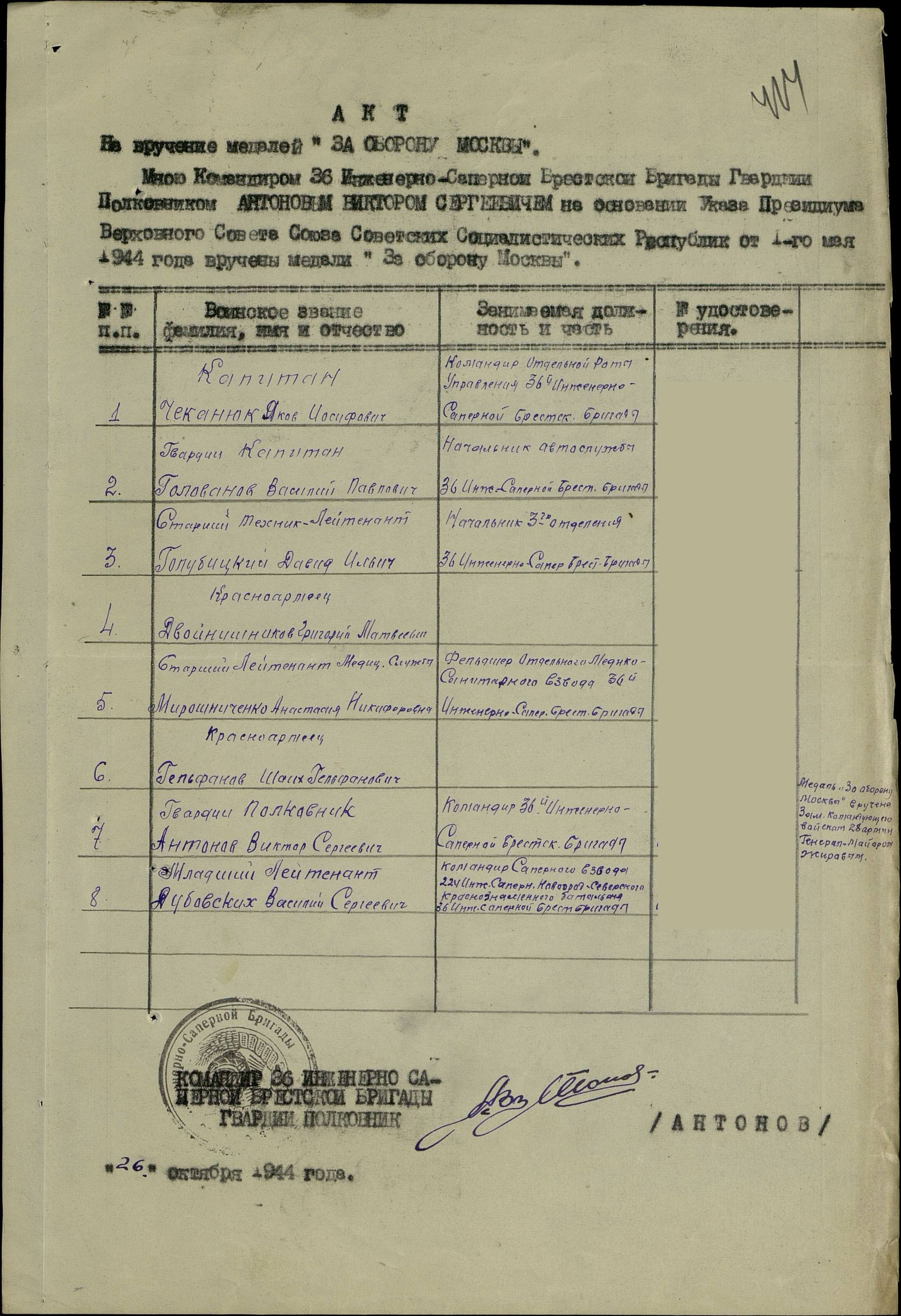 Победу встретил в должности начальника 3-го отделения 36-й инженерно-саперной Бресткой бригады.