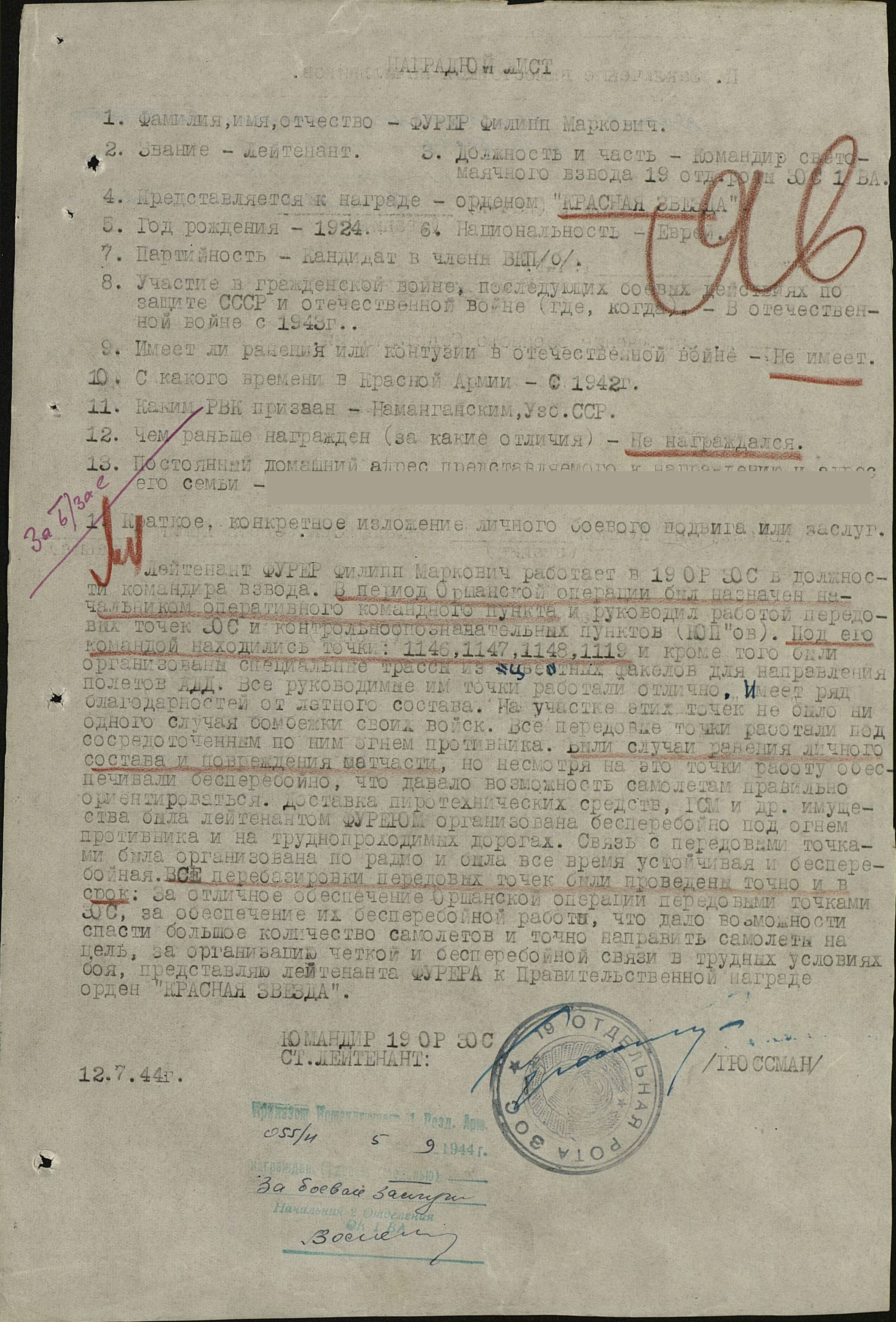командир светомаячного взвода 19 ОР ЗОС, 1-й воздушной армии 1943-1945