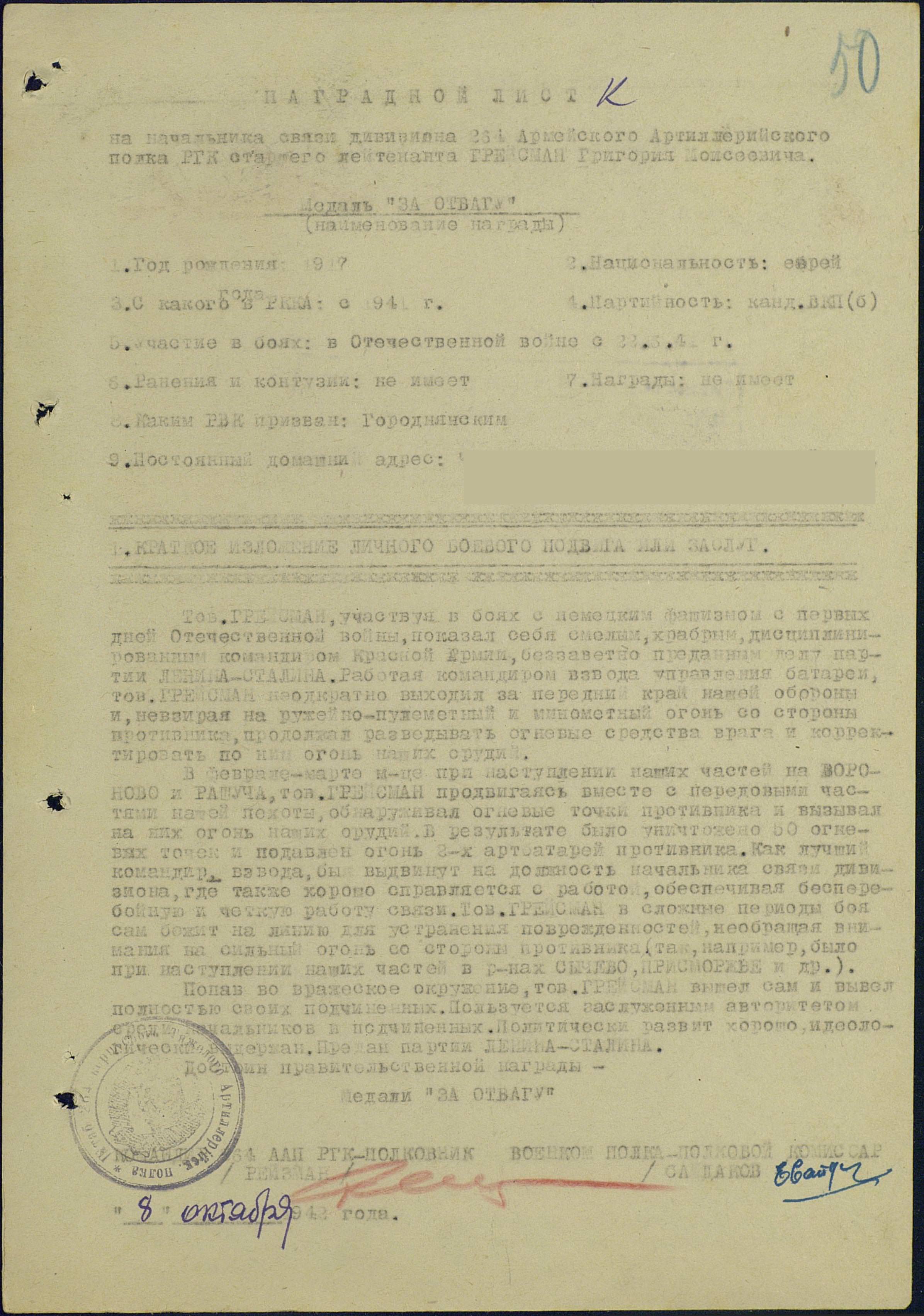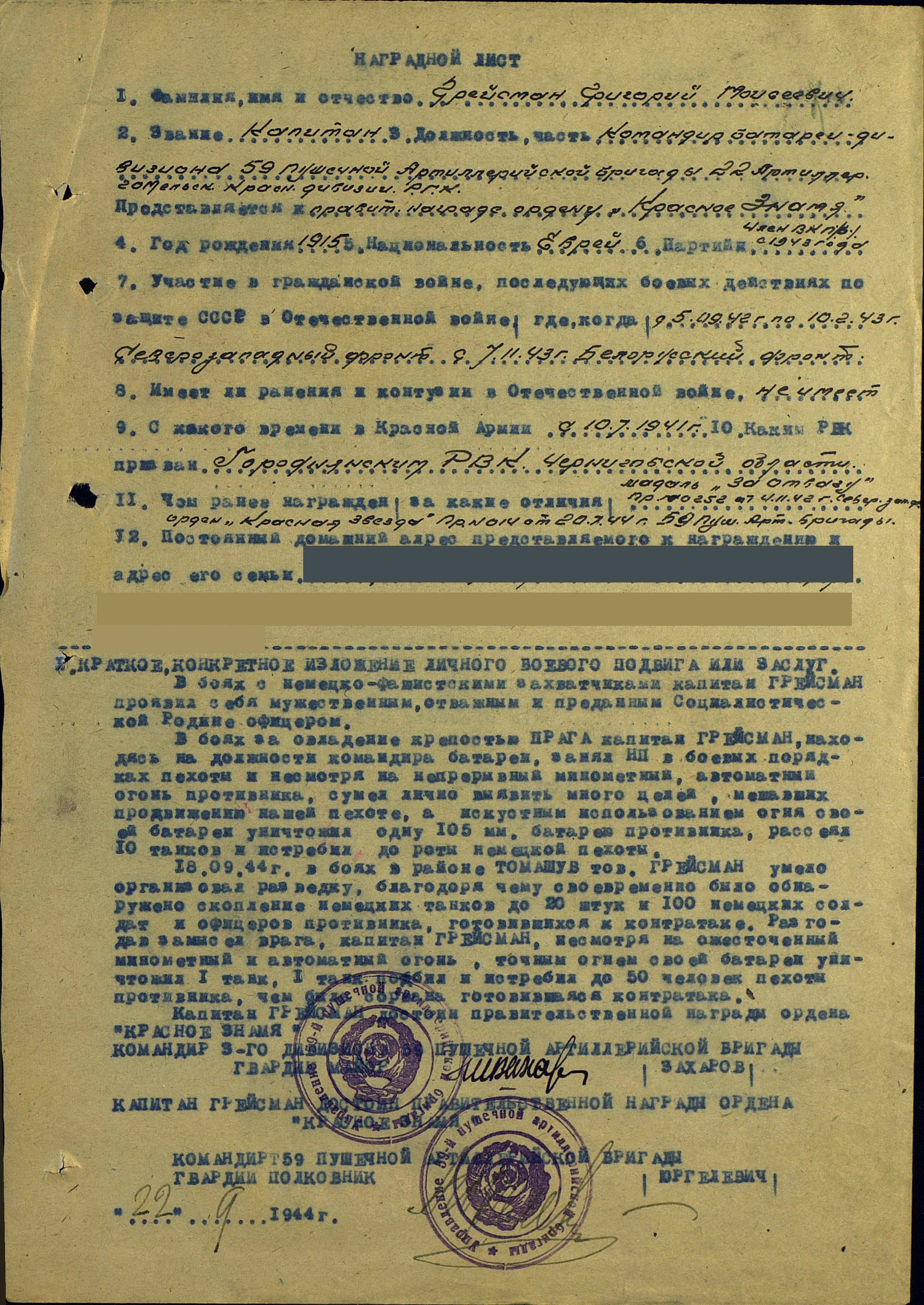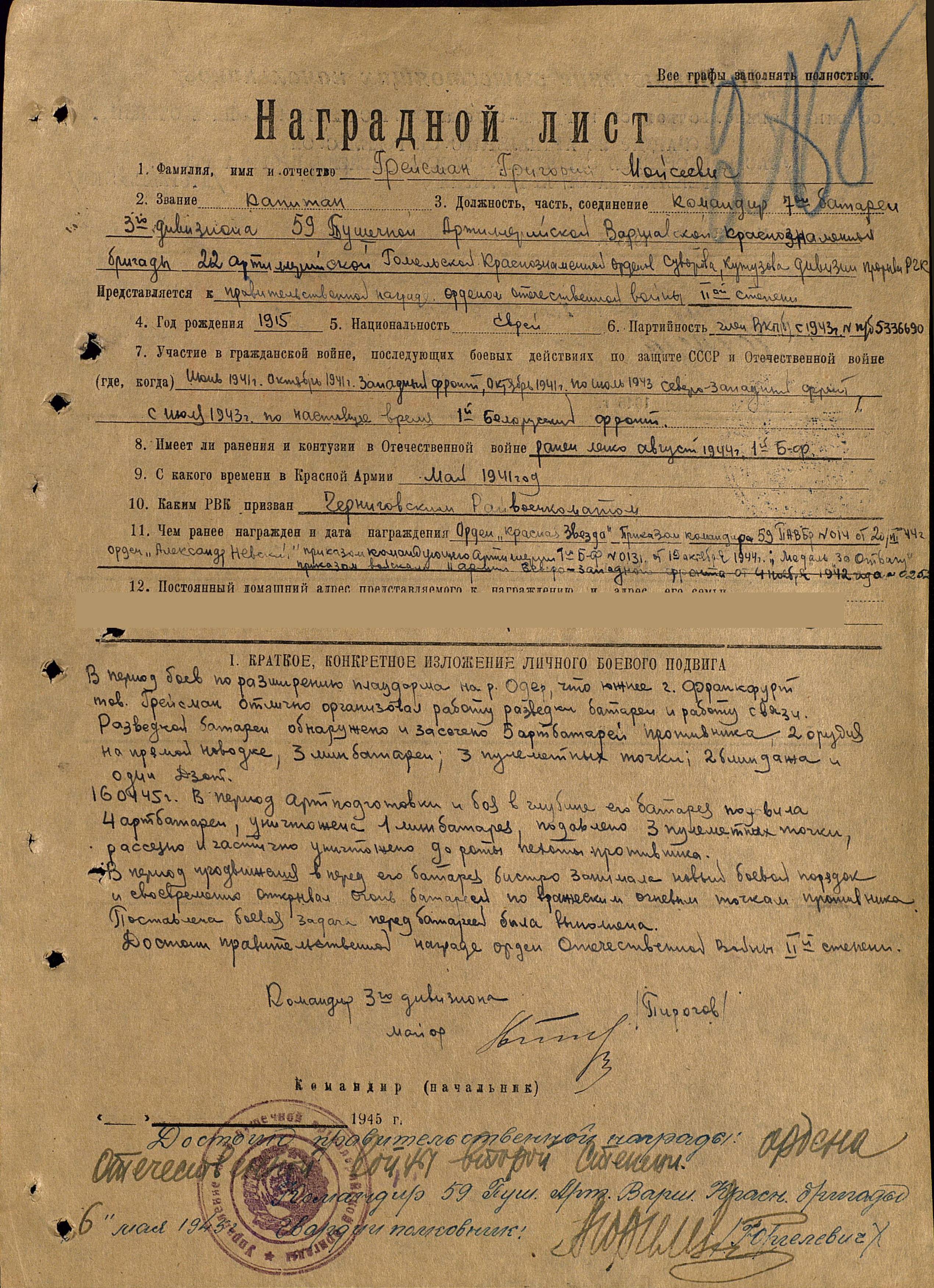 Если кто-нибудь имеет более подробную информацию и фотографии Грейсмана Григория Моисеевича просим предоставить их на почту нашего сайта www.jewmil.com