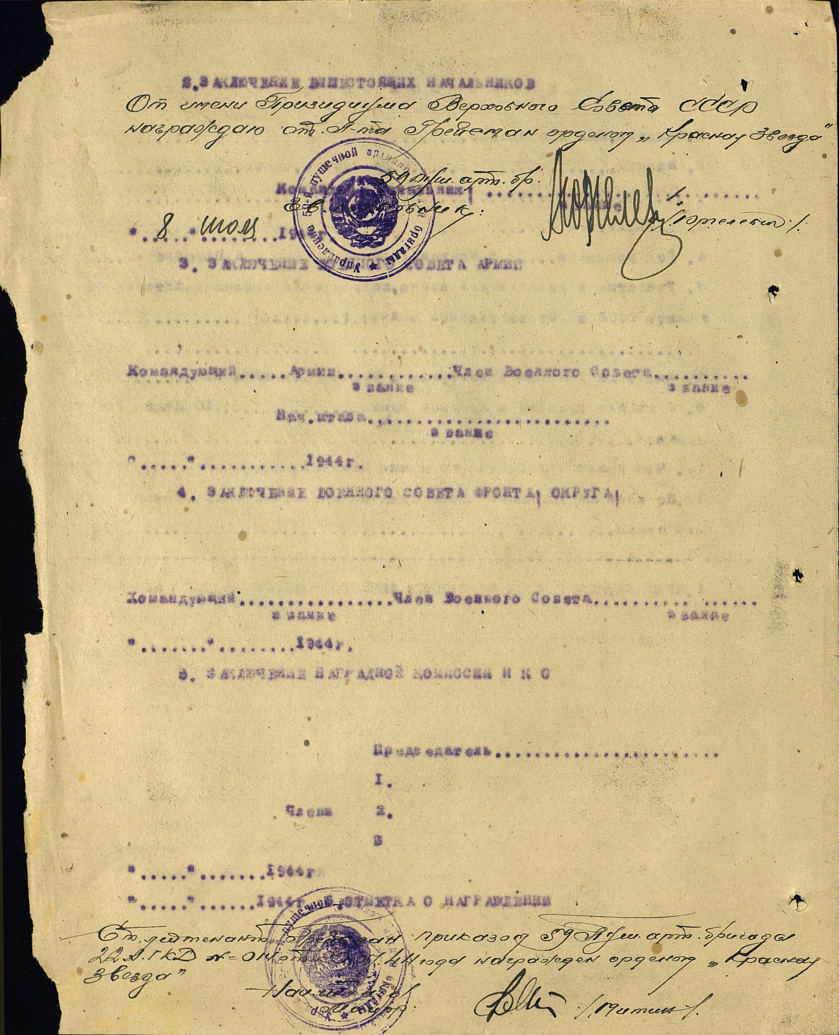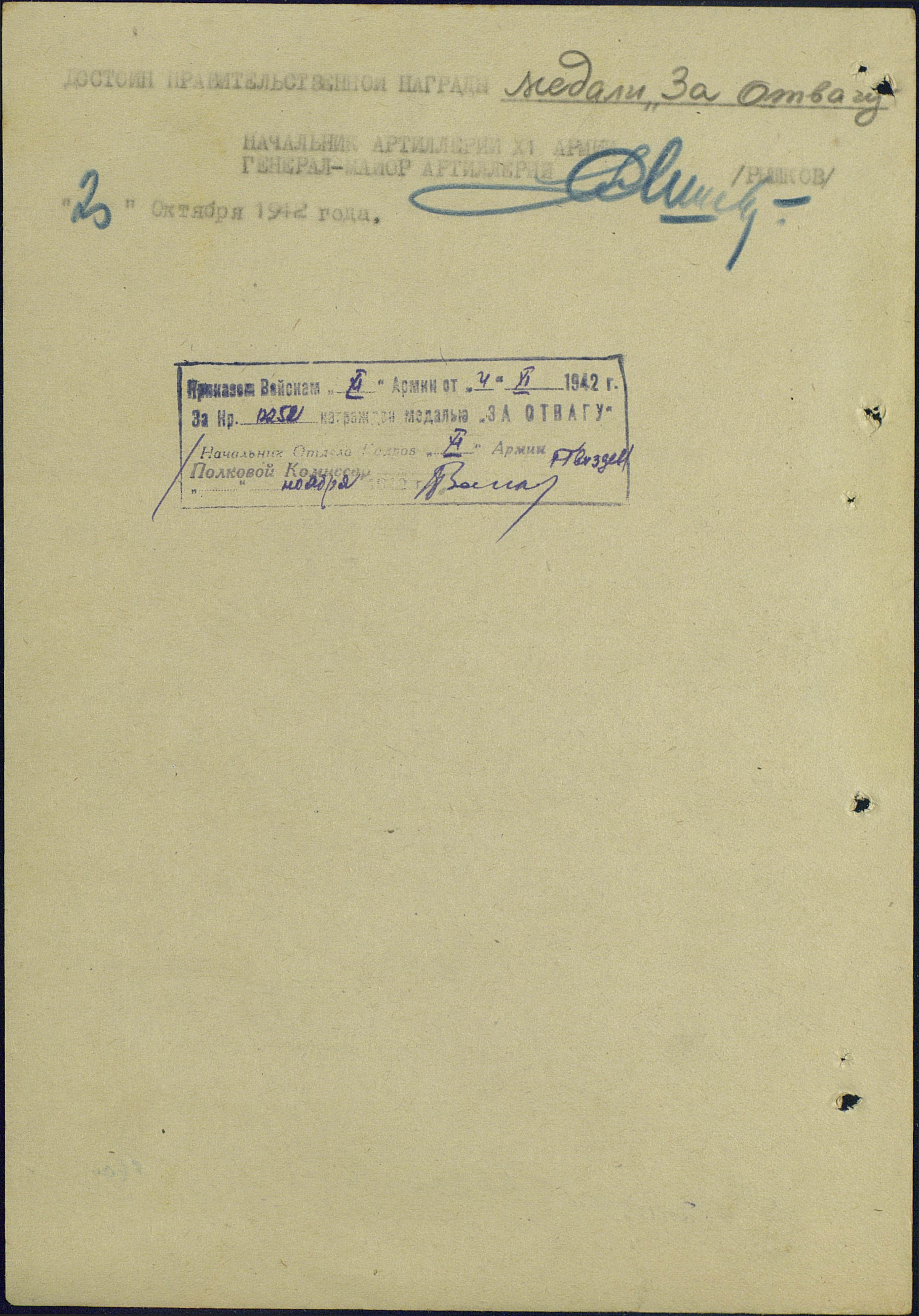 Награжден 4-мя боевыми орденами и медалью "За Отвагу".