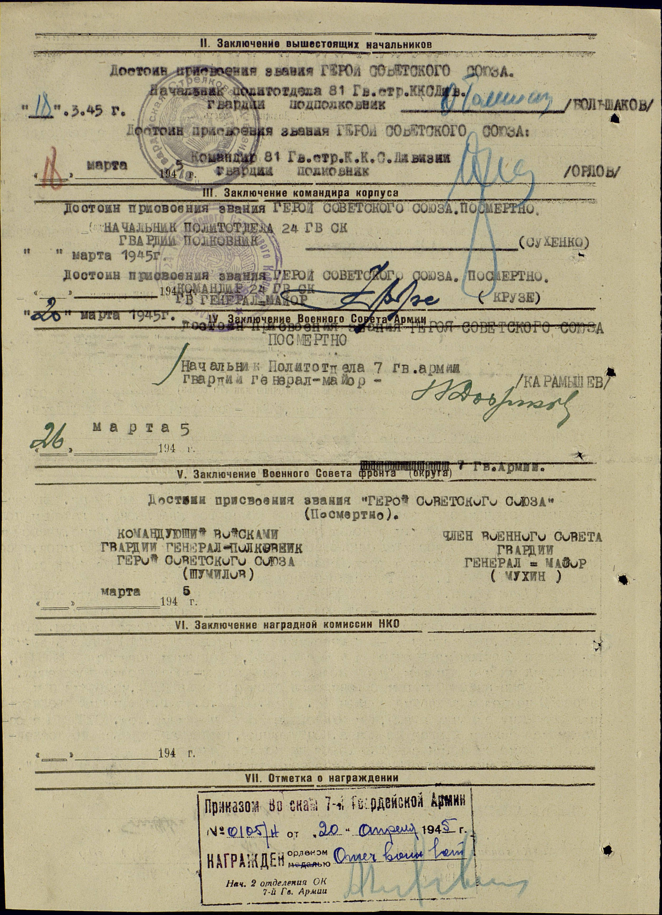 Достоин к посмертному присвоению звания «ГЕРОЯ СОВЕТСКОГО СОЮЗА»