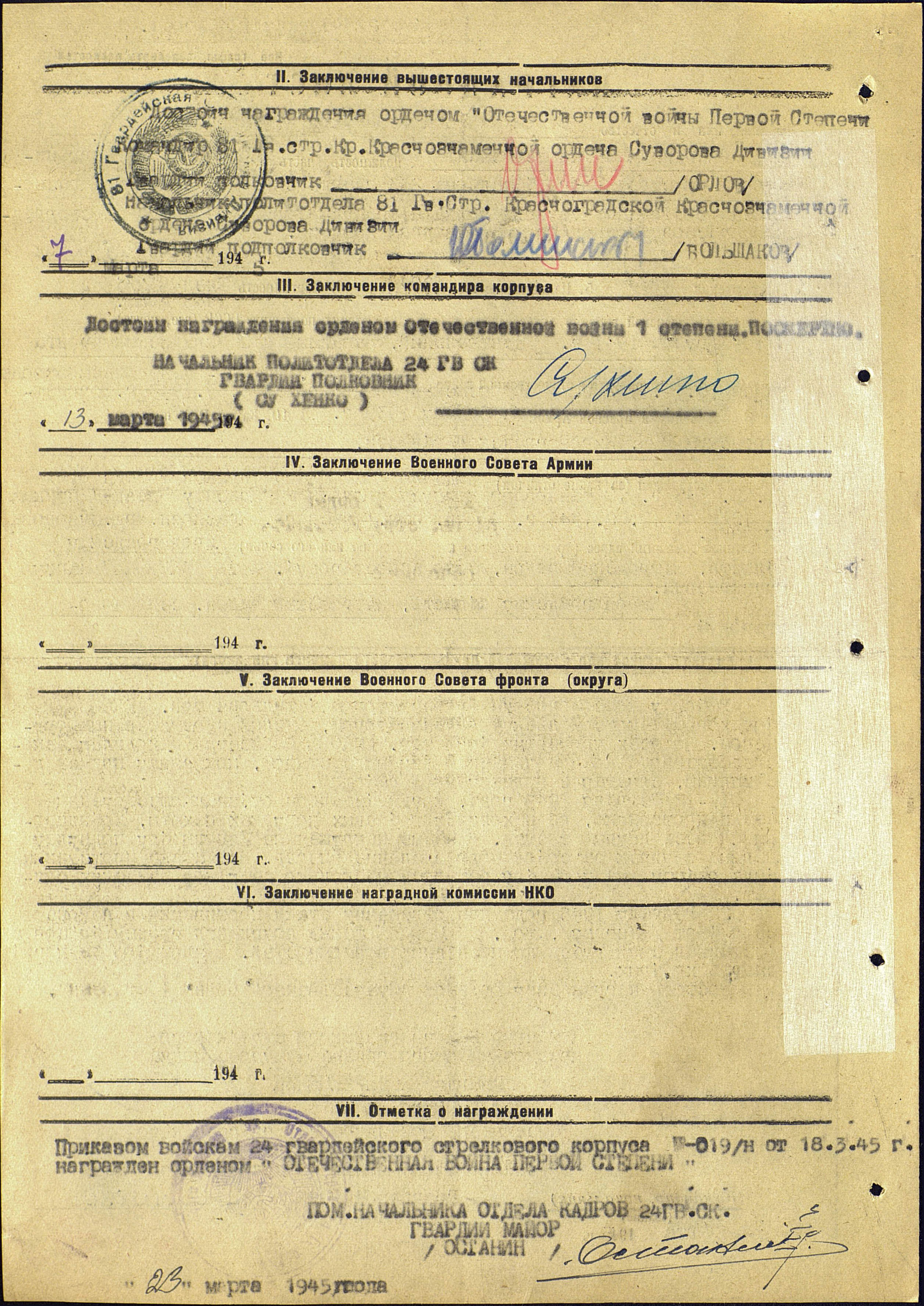 начальник политотдела 81-й гвардейской стрелковой дивизии подполковник Большаков