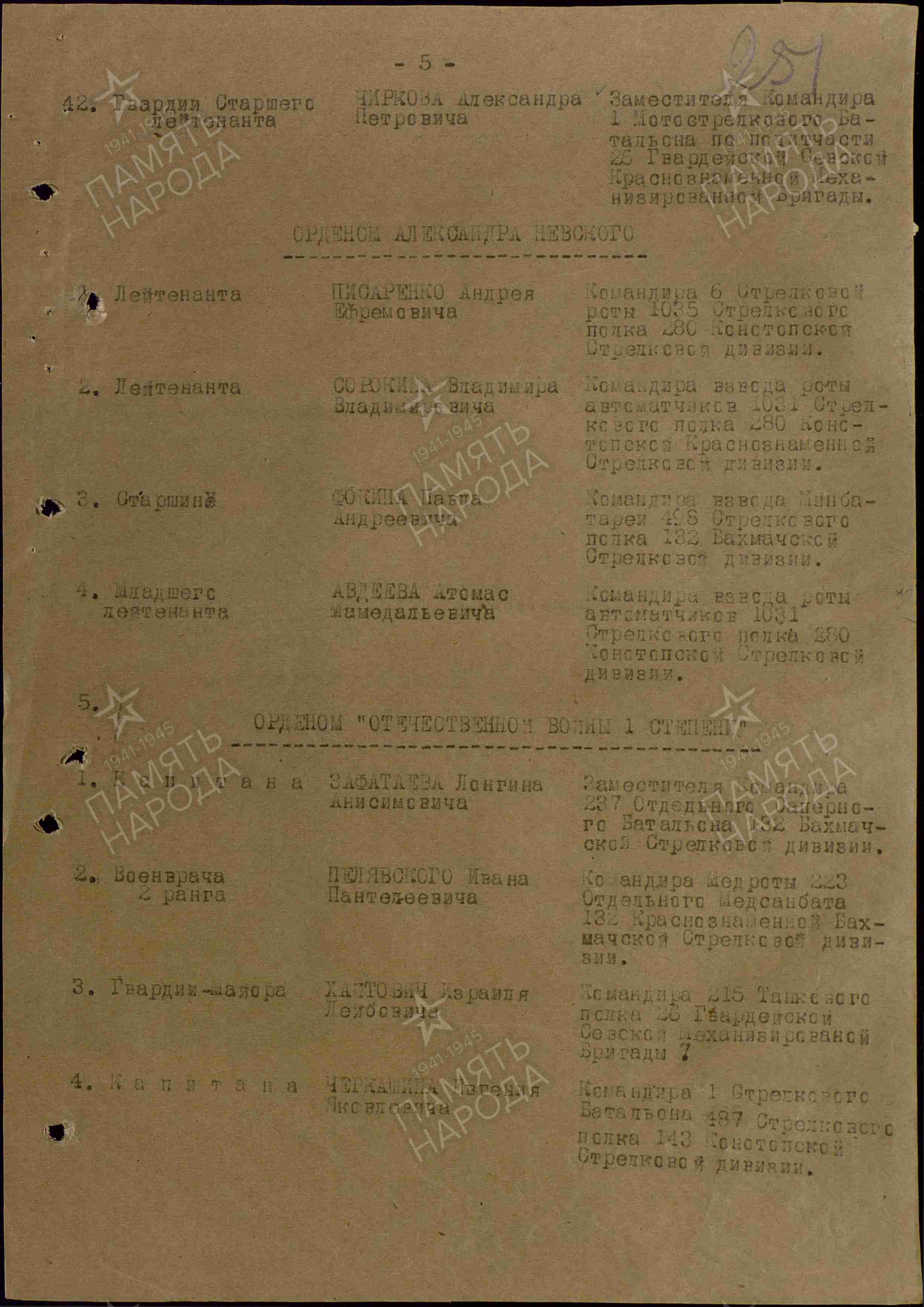 5. Гвардии майор ХАЙТОВИЧ И. Л. ("ПАМЯТЬ НАРОДА 1941 - 1945": https://pamyat-naroda.ru/commander/5561/ ):