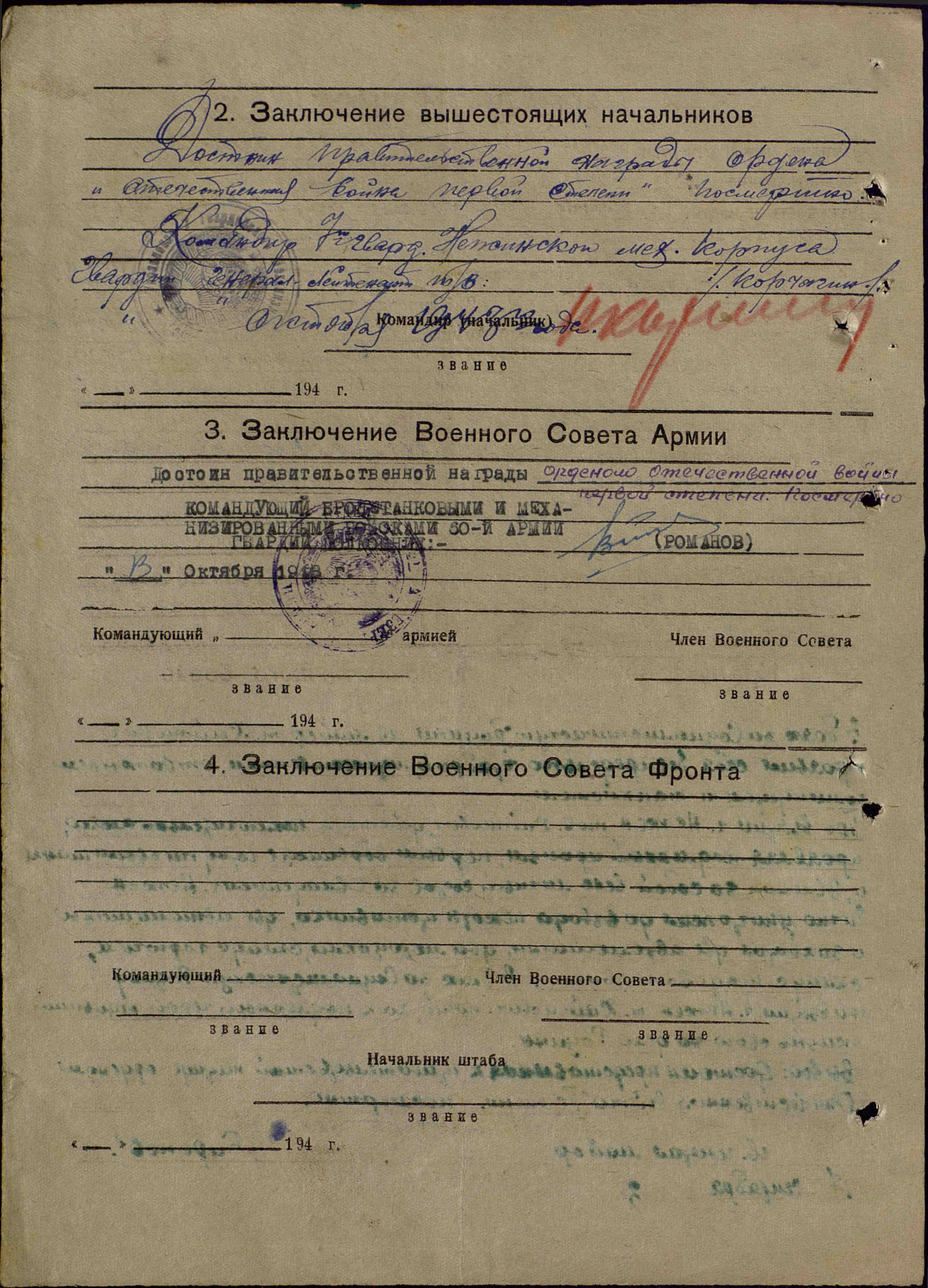 | 21.10.1943 | Орден Отечественной войны I степени |