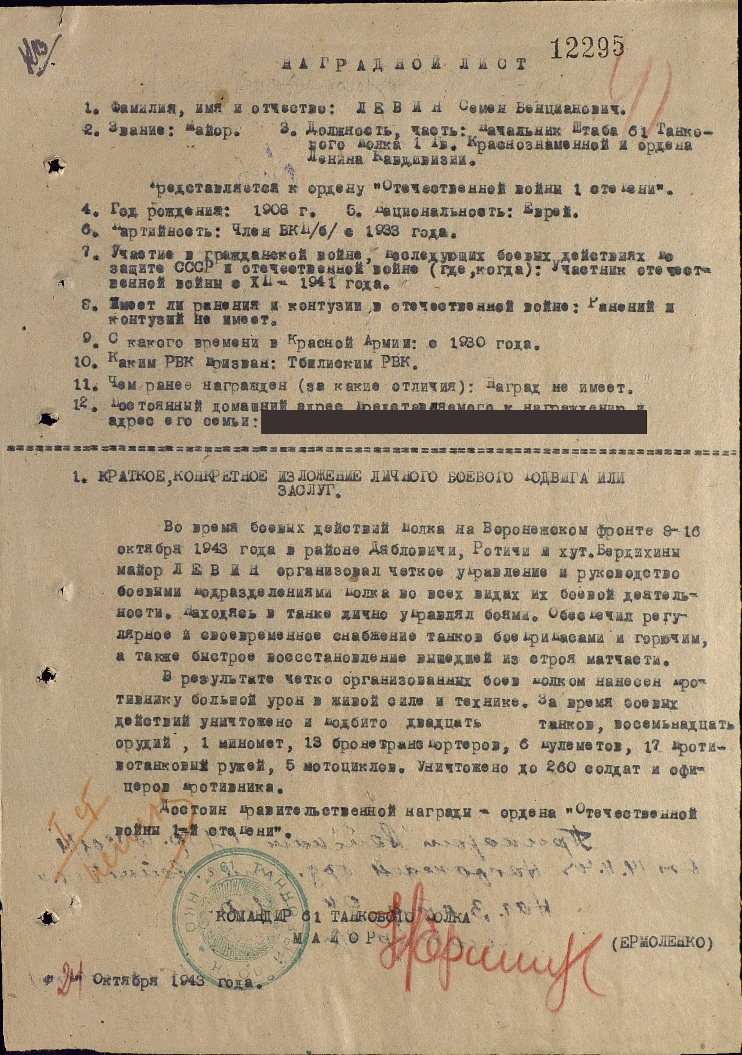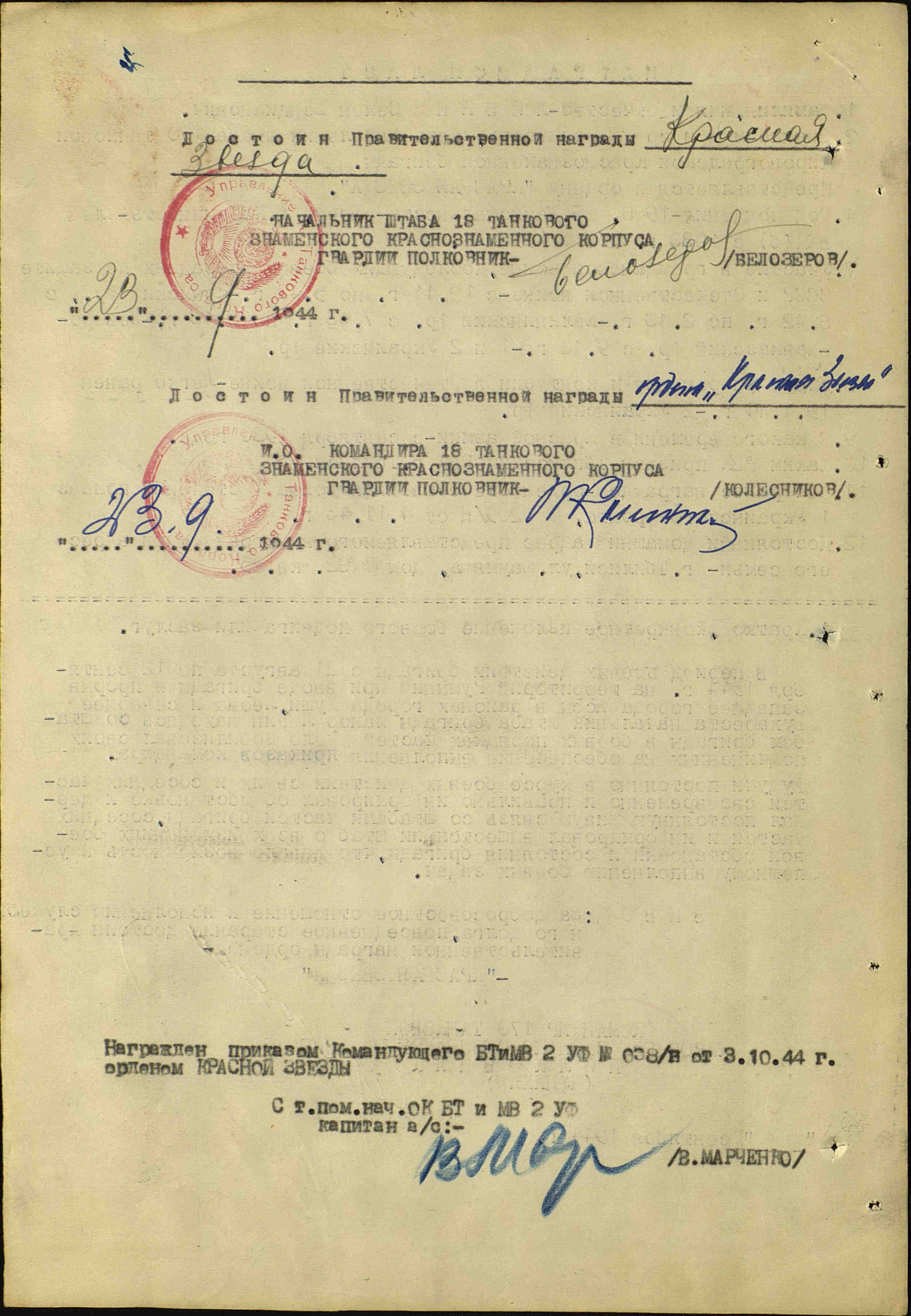 начальник штаба 61-го танкового полка, 1-й гвардейской Крамнознаменной Кавалерийской дивизии 1943-1944