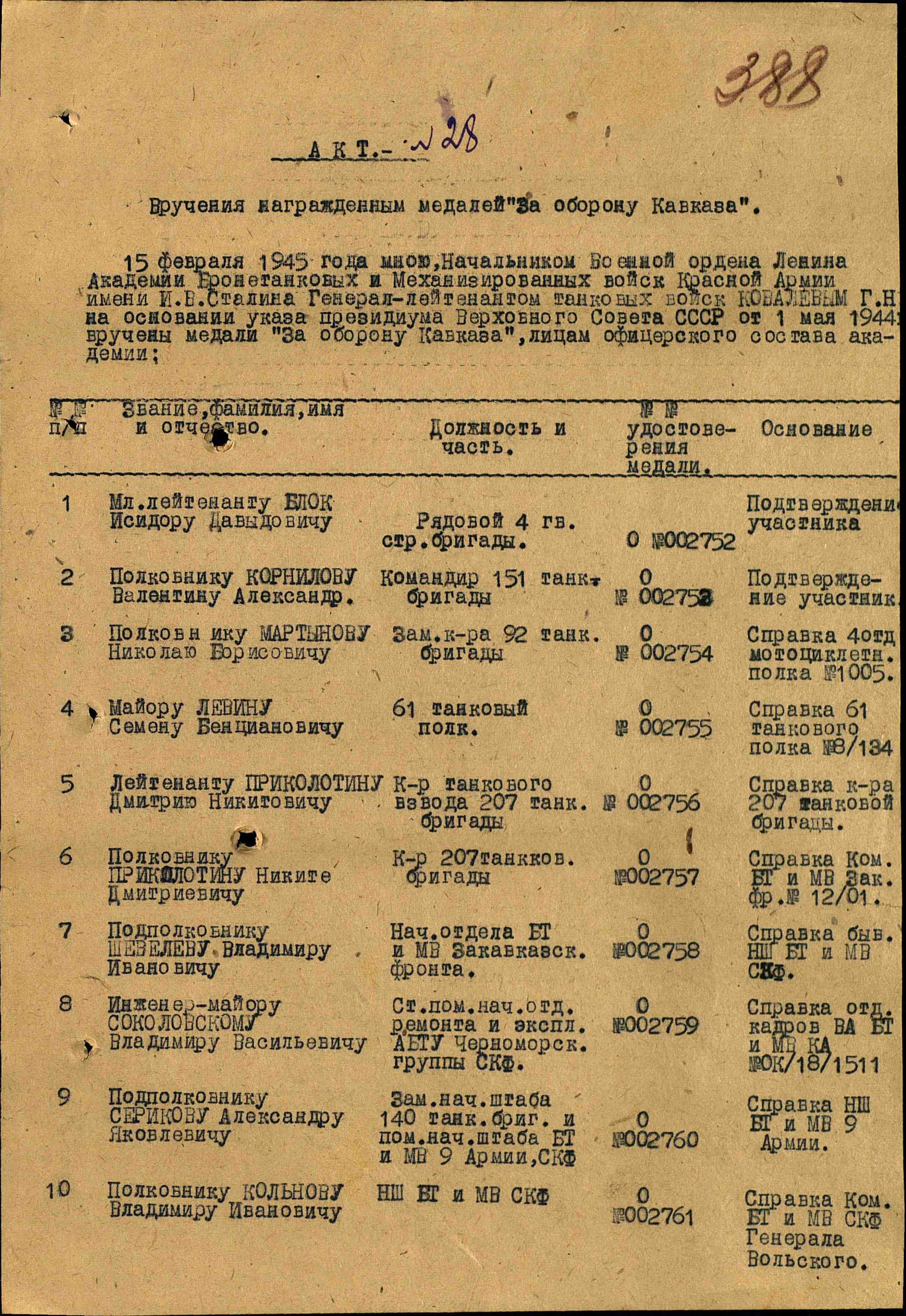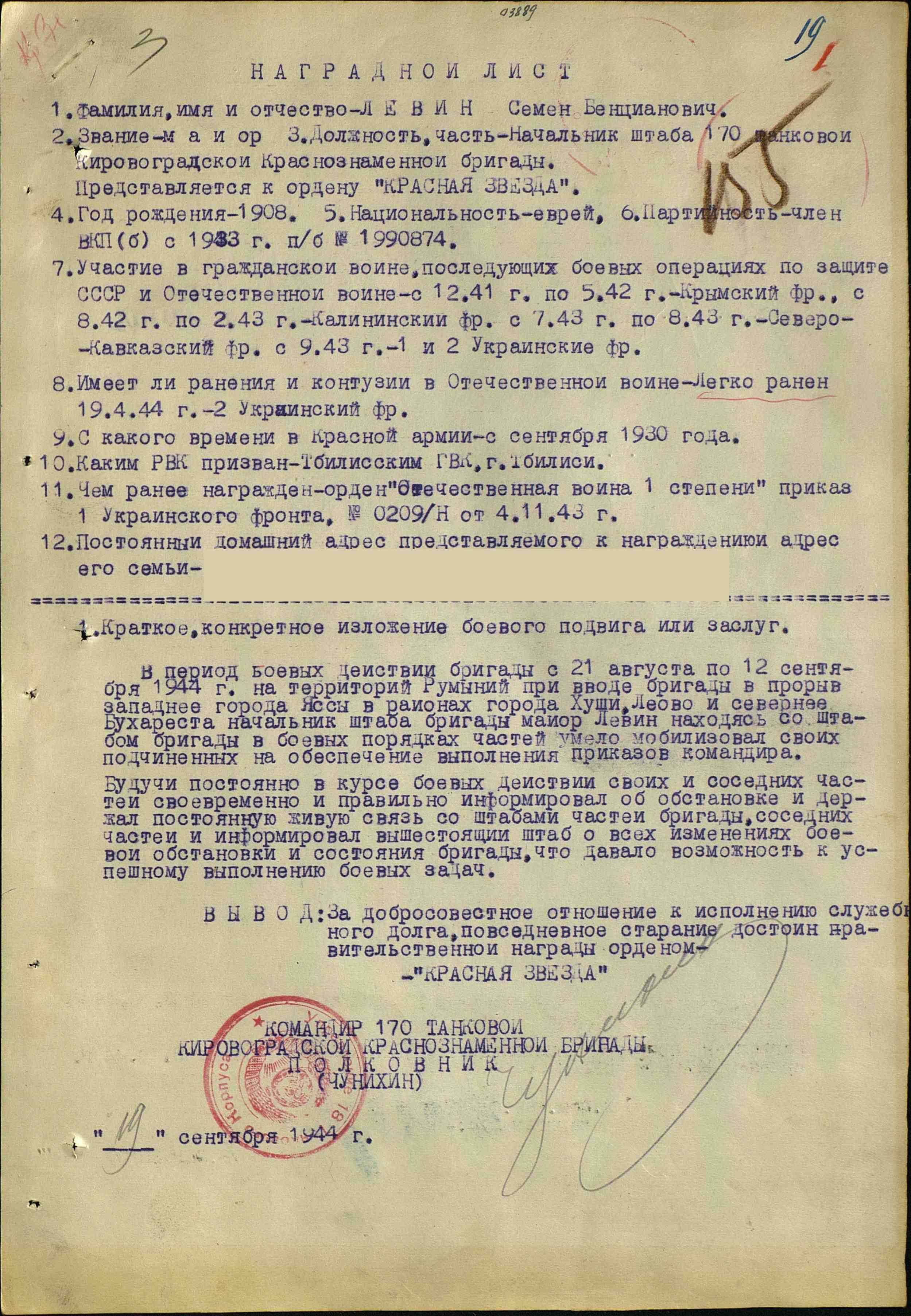 начальник штаба 170-й Кировоградской Краснознаменной танковой бригады 1944-1945