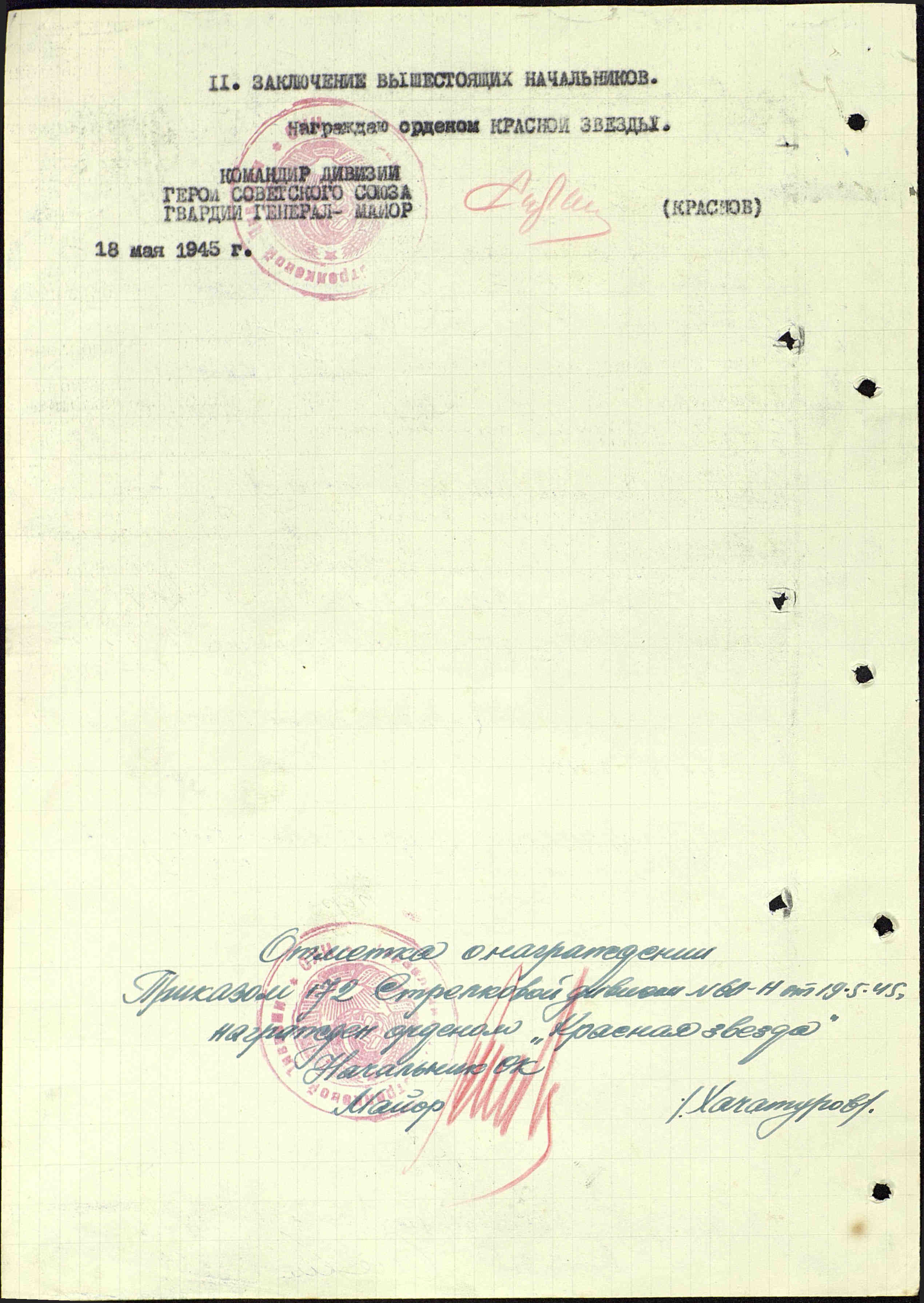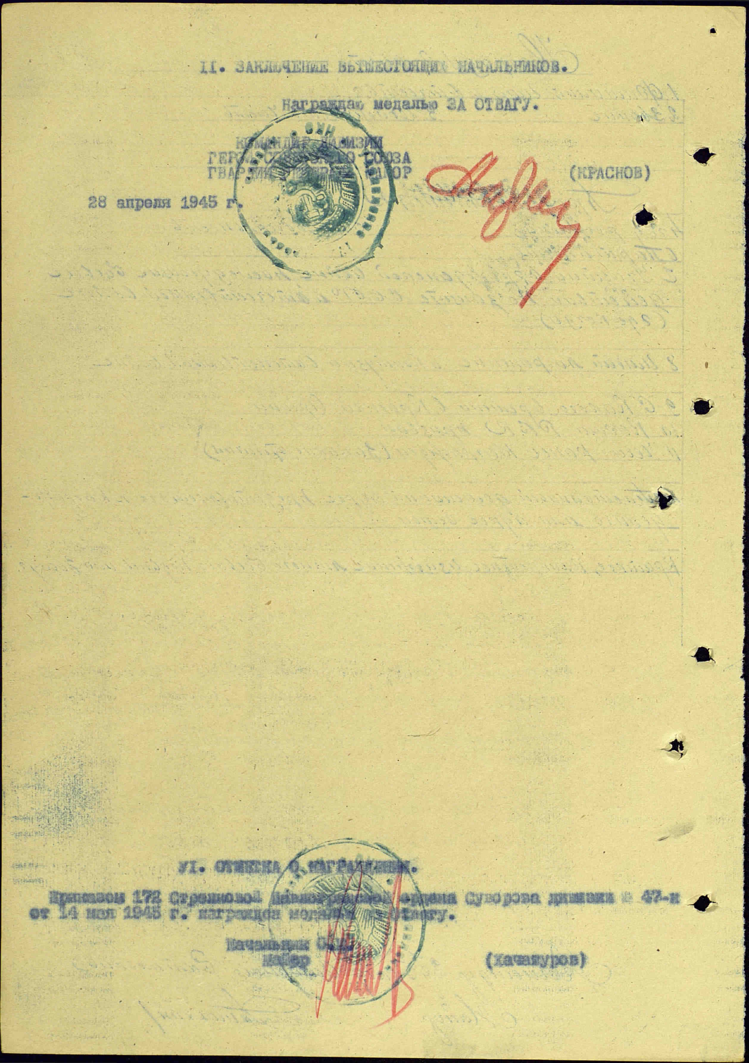 Награжде 2-мя орденами и медаль "За Отвагу".