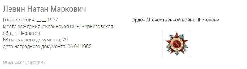 Левин Натан Маркович родился 19 декабря 1927 года в городе Чернигове. Еврей.