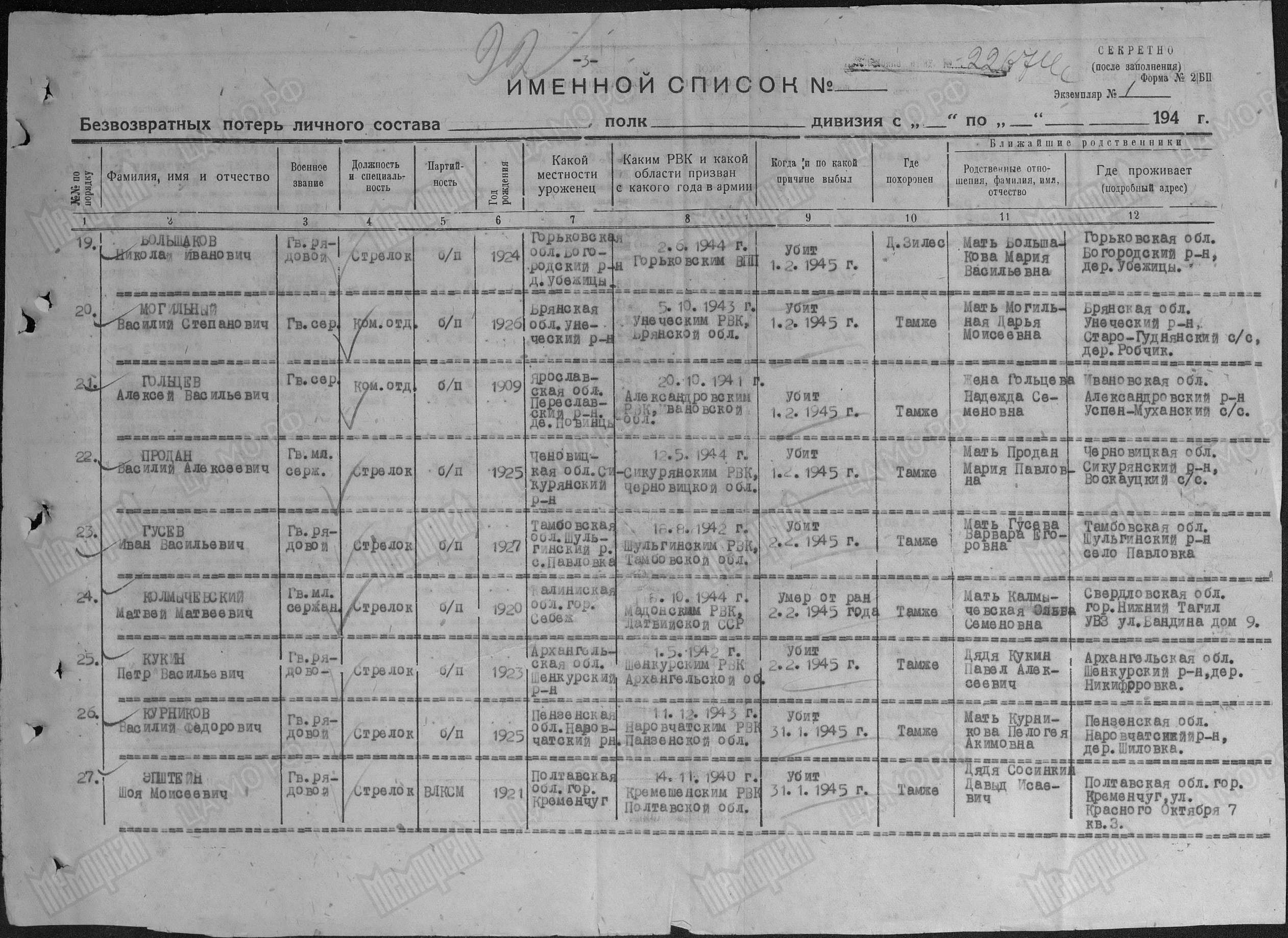 В этом бою тов. Эпштейн истребил 19 немецких солдат. Получив восемь ранений, и громя врага до последнего дыхания, тов. Эпштейн погиб смертью героя.