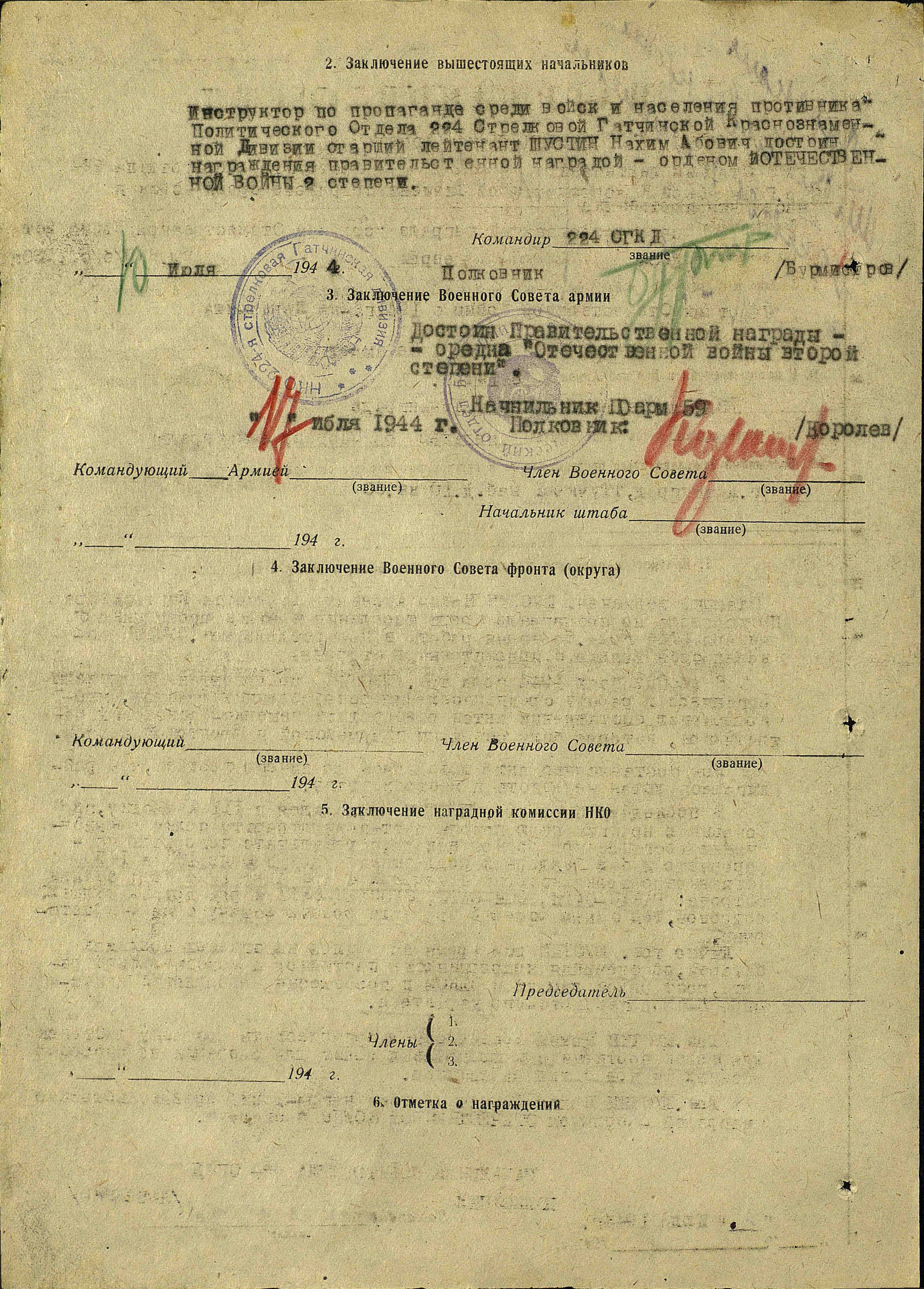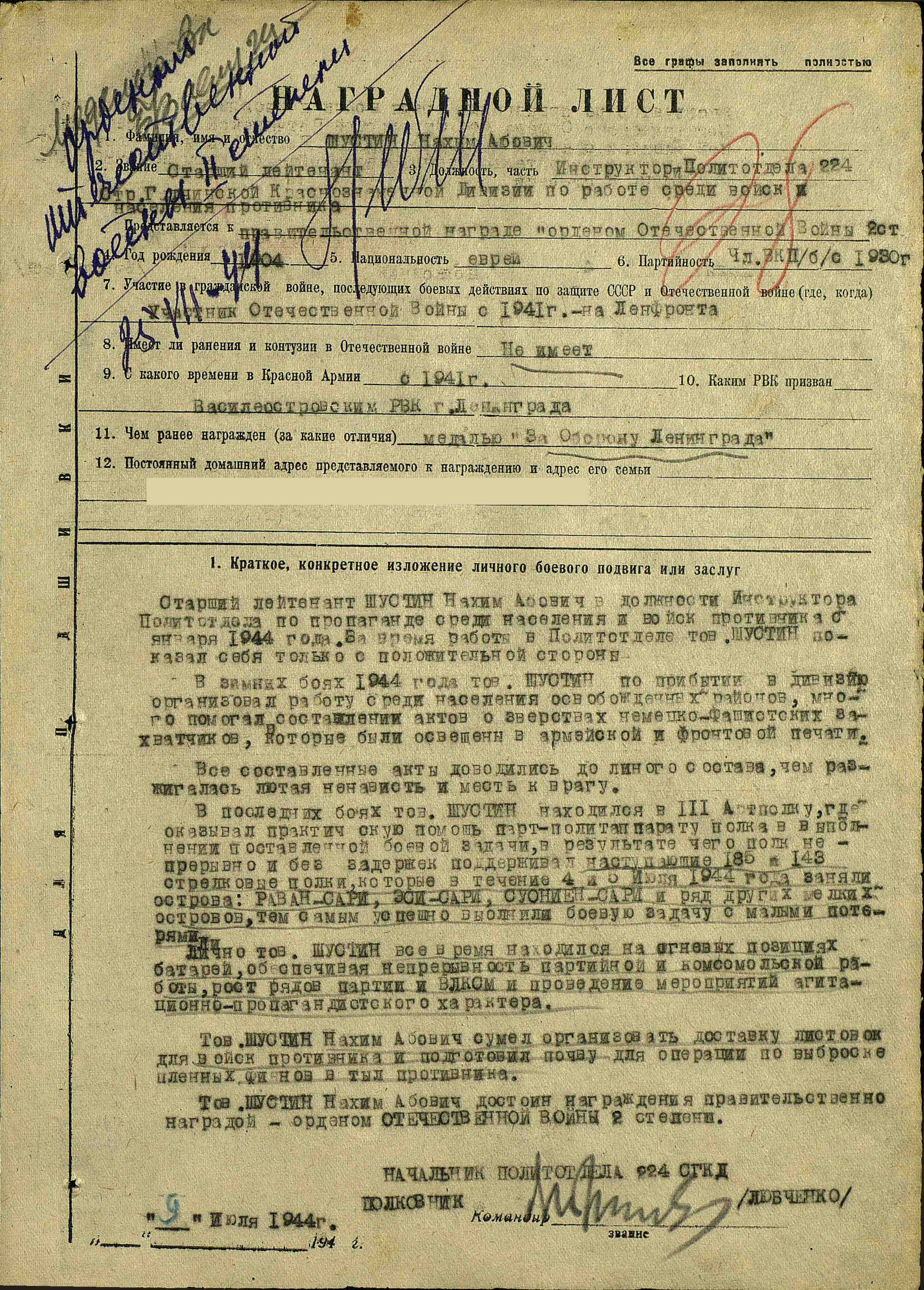 инструктор политотдела 224-й стрелковой Гатчинской Краснознаменной дивизии по работе среди войск и населения противника
