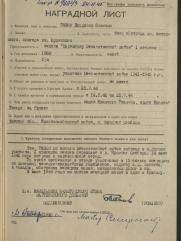 | 09.05.1945 | Медаль «За победу над Германией в Великой Отечественной войне 1941–1945 гг.» |
