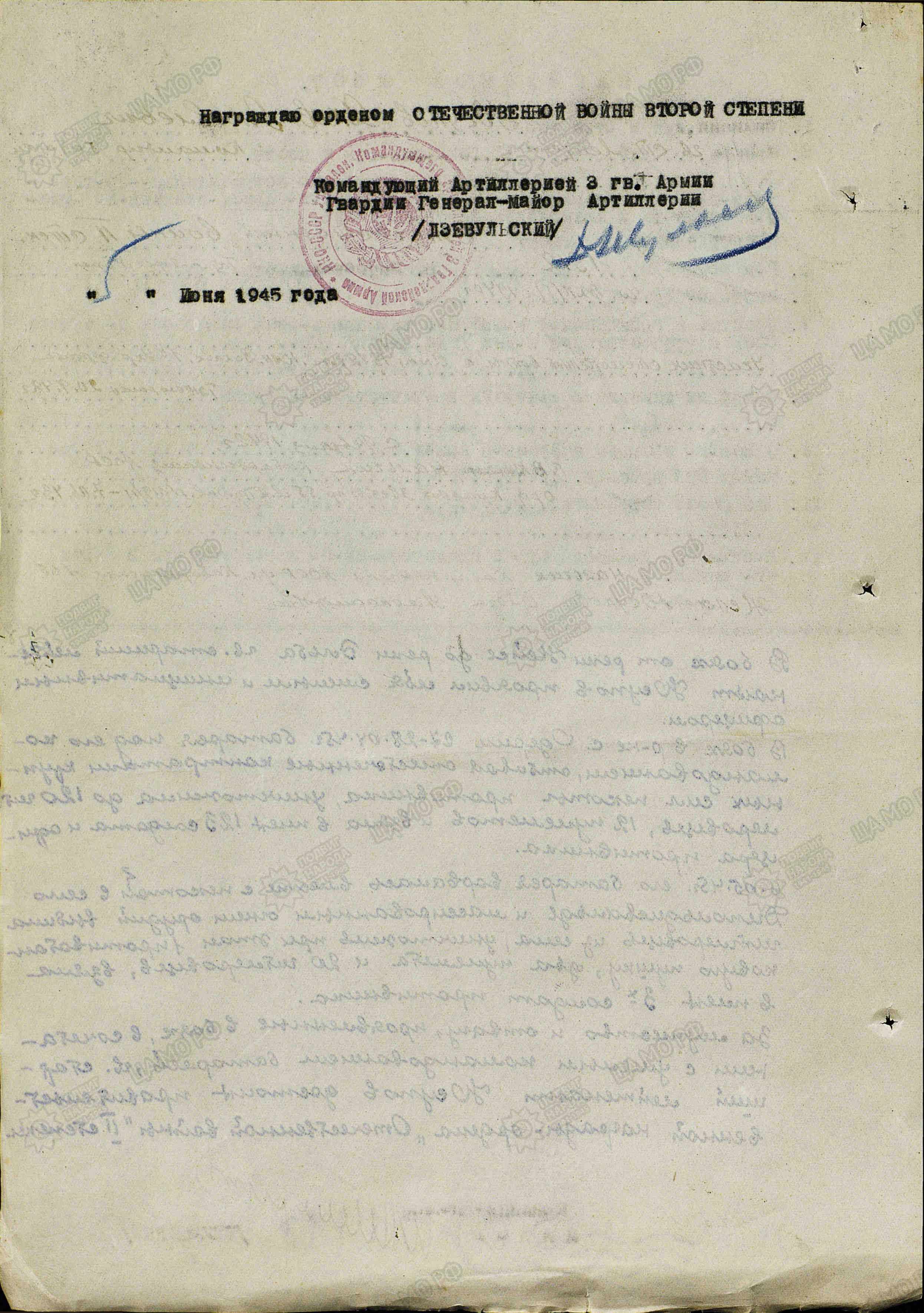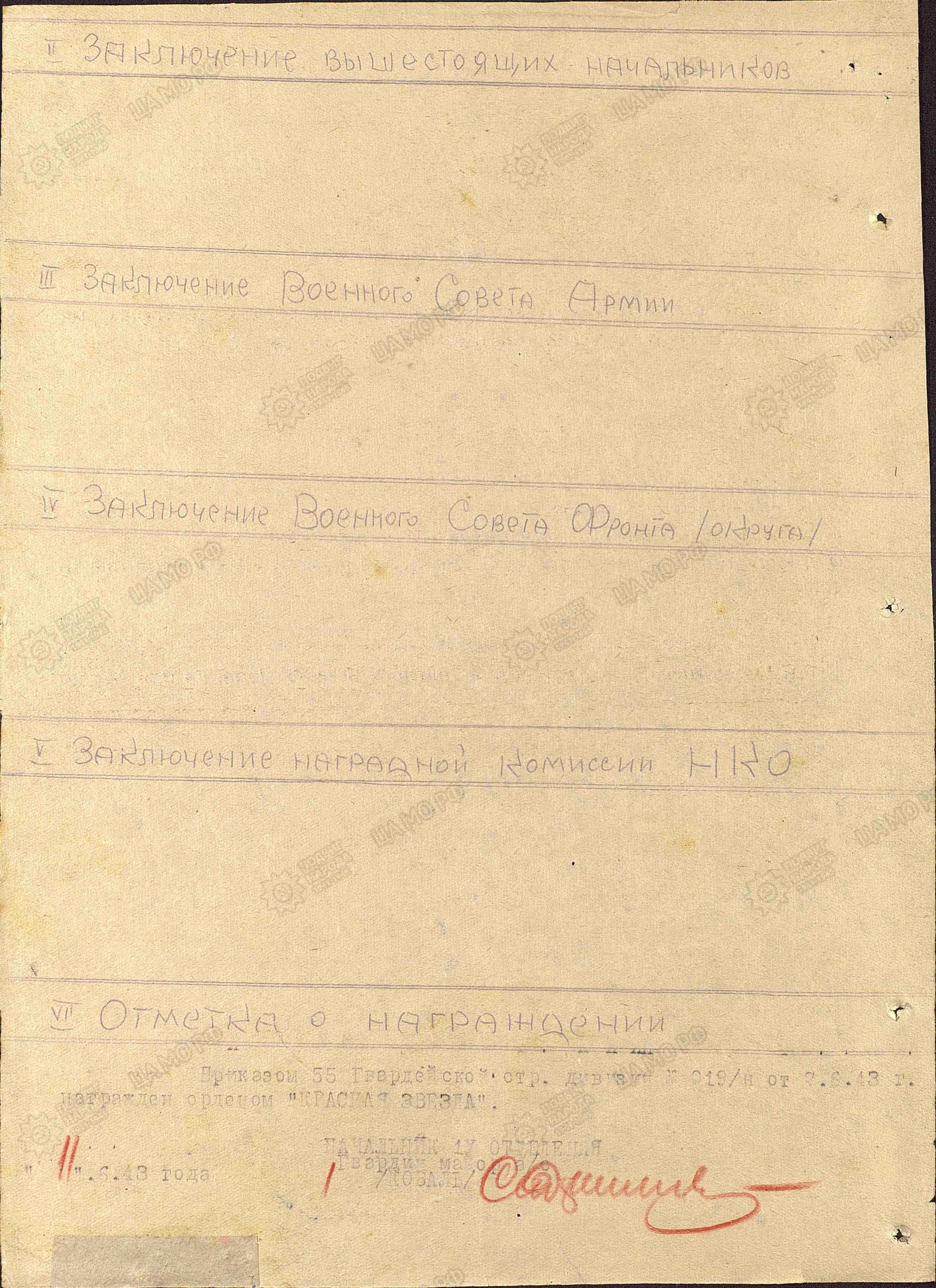 Из наградного листа: