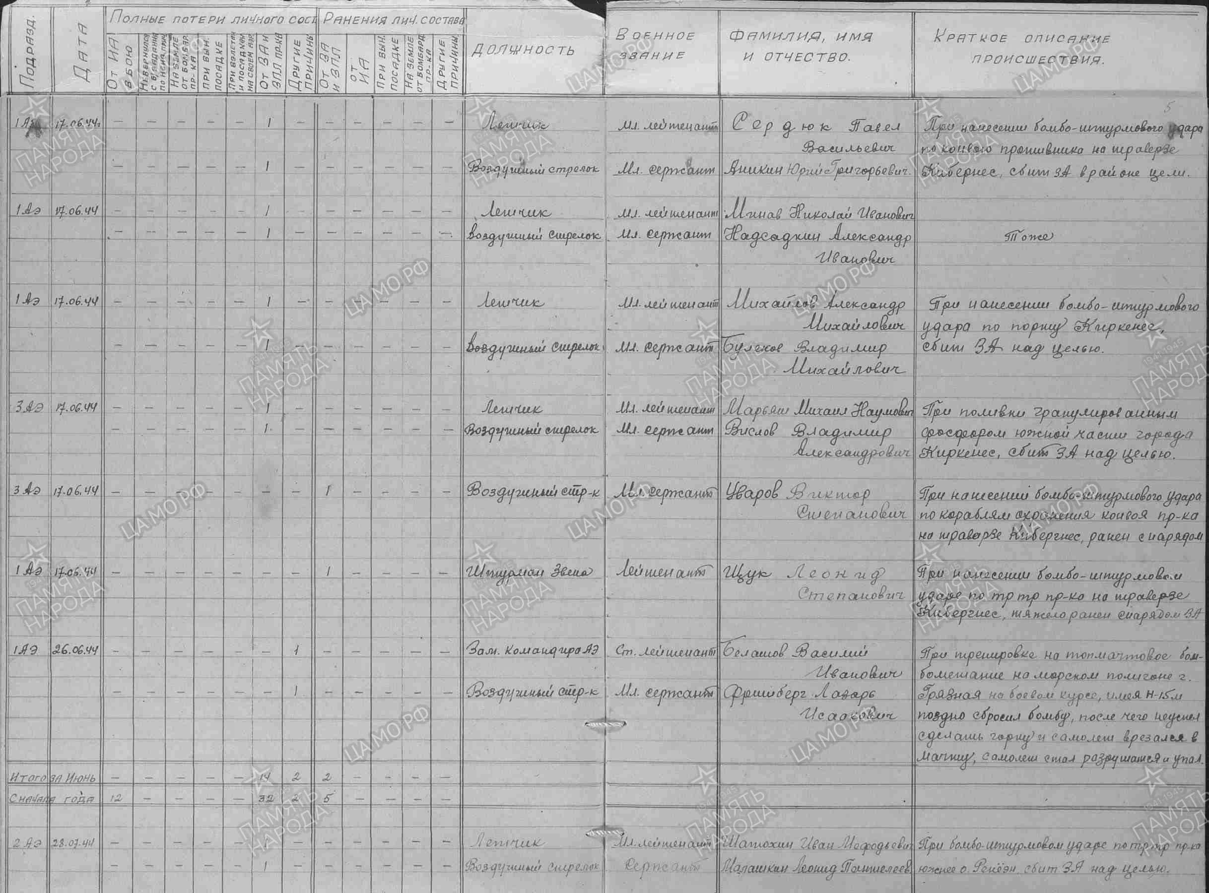 77. летчик мл.лейтенант Марьяш Михаил Наумович 1920 г.р. 17.06.44 г.