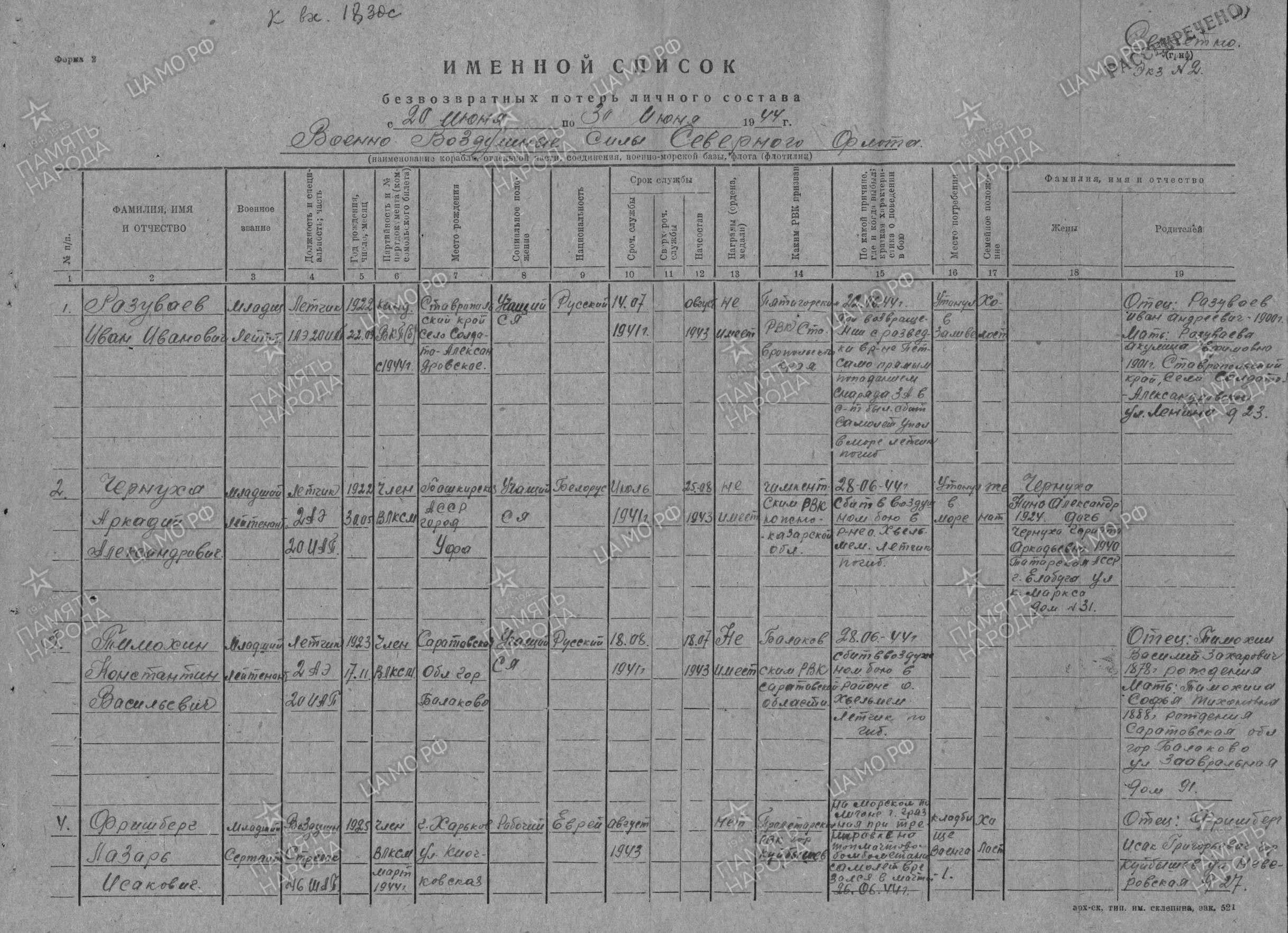 89. возд.стрелок мл.сержант Фришберг Лазарь Исаакович 1925 г.р. 26.06.44 г.