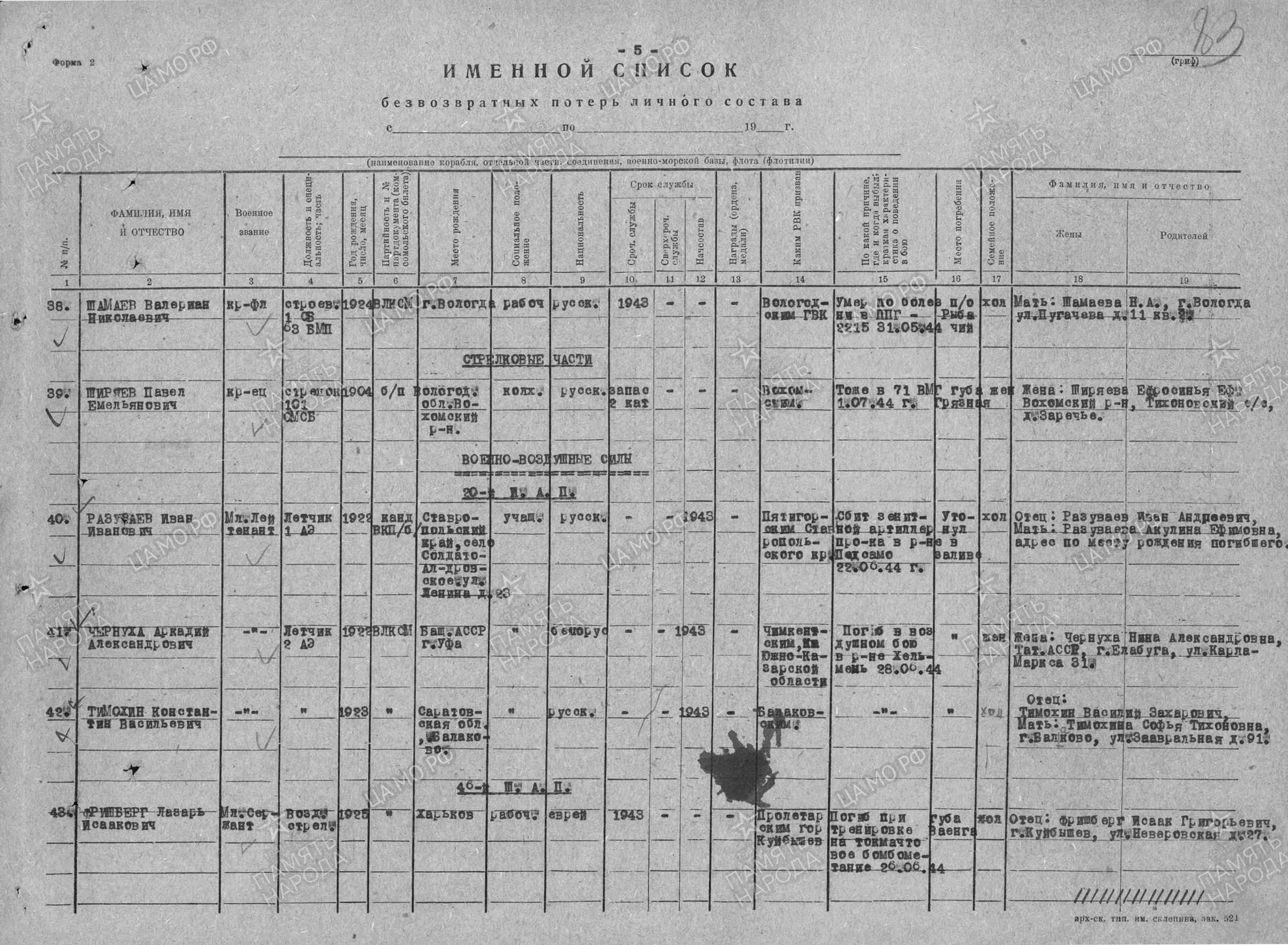 19. штурман звена/возд стр командир запаса Евгеньев Николай Ильич 1910 г.р. 26.08.43 г.