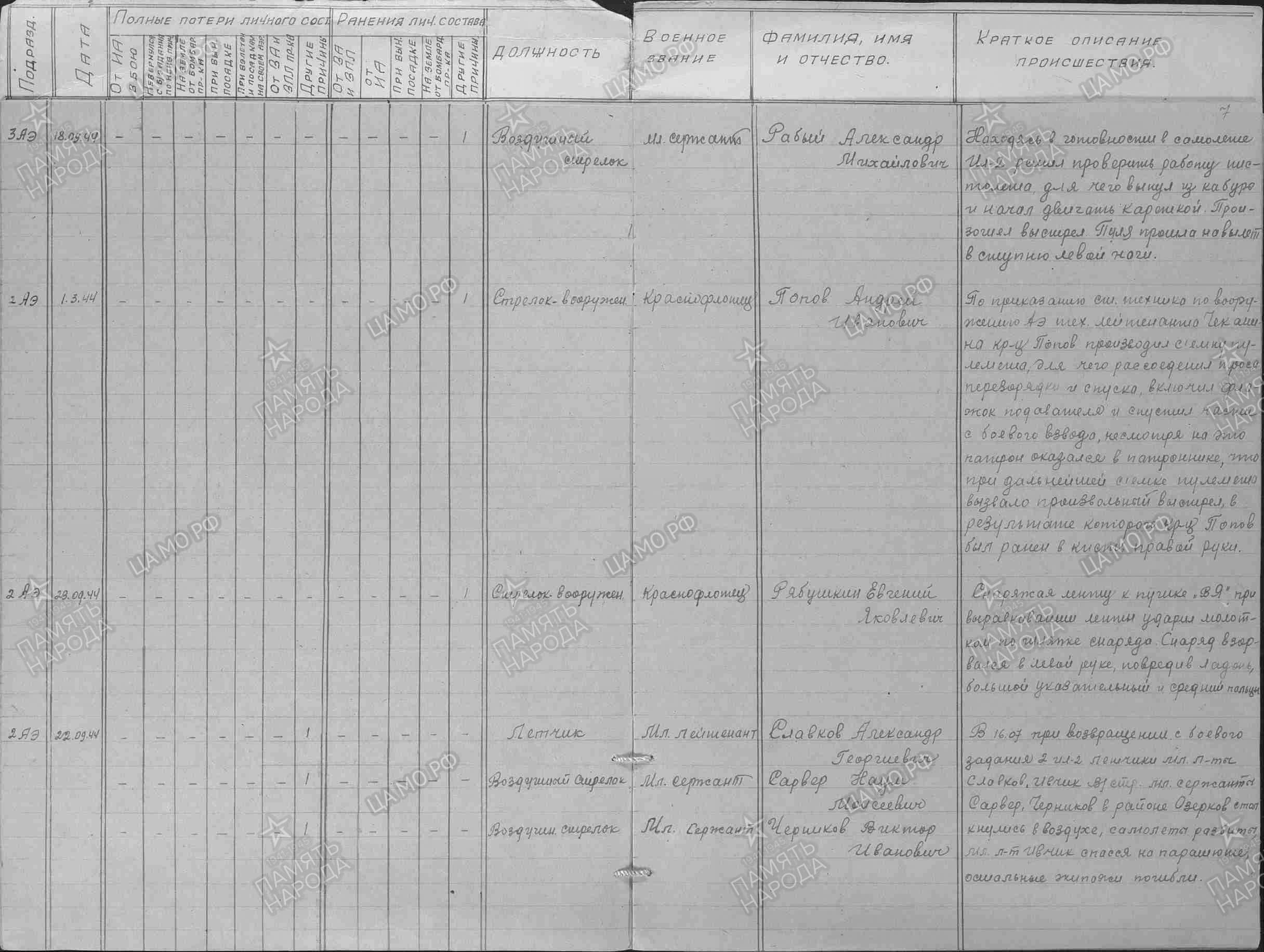13. летчик мл.лейтенант Гусев Александр Васильевич 1920 г.р. 16.08.43 г.
