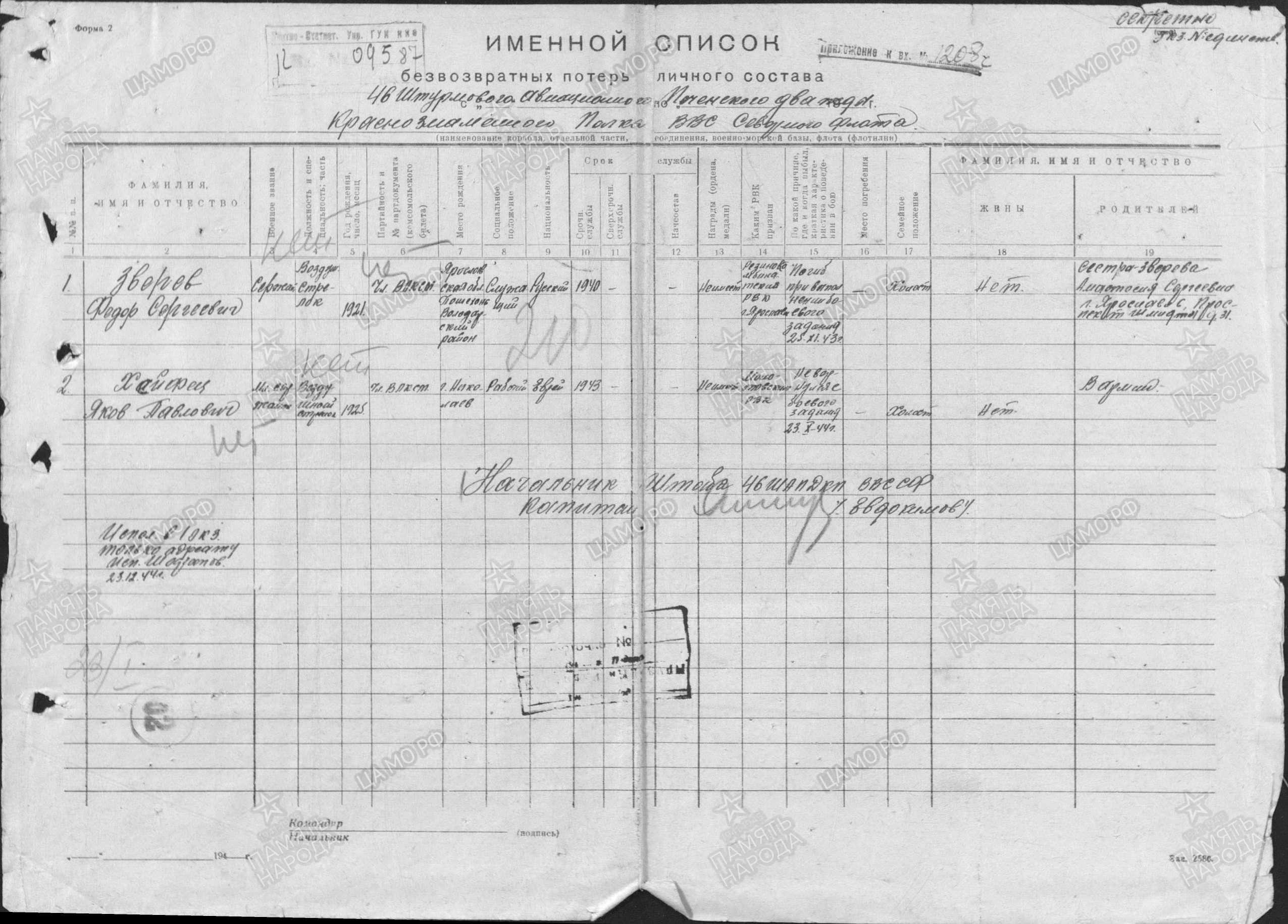 Именной список "Безвозвратных потерь личного состава 46 шап":