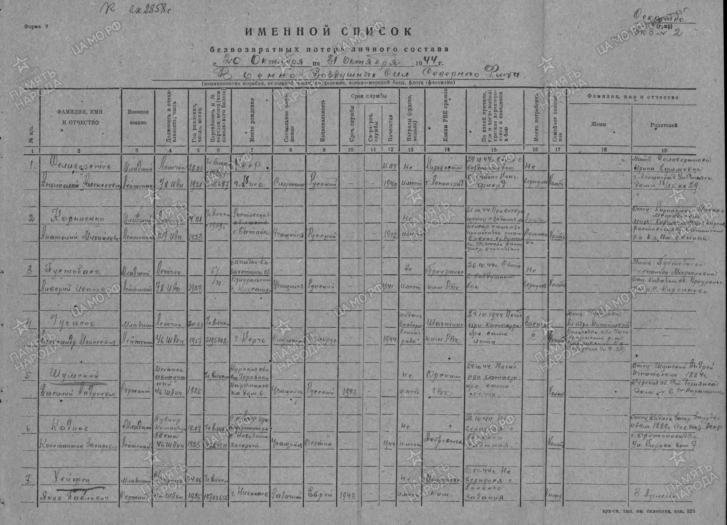 54. возд.стрелок краснофлотец Скороходов Александр Петрович 1921 г.р. 23.04.44 г.
