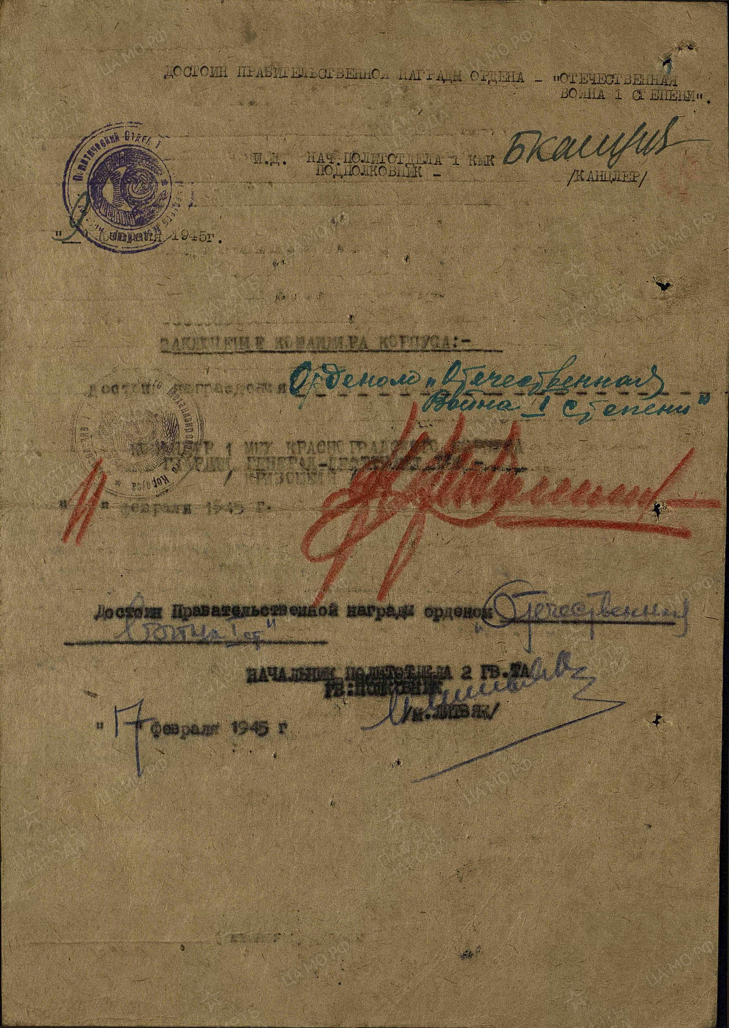 В Красной Армии с 1941 года. Член Вкпб с 1943 года.
