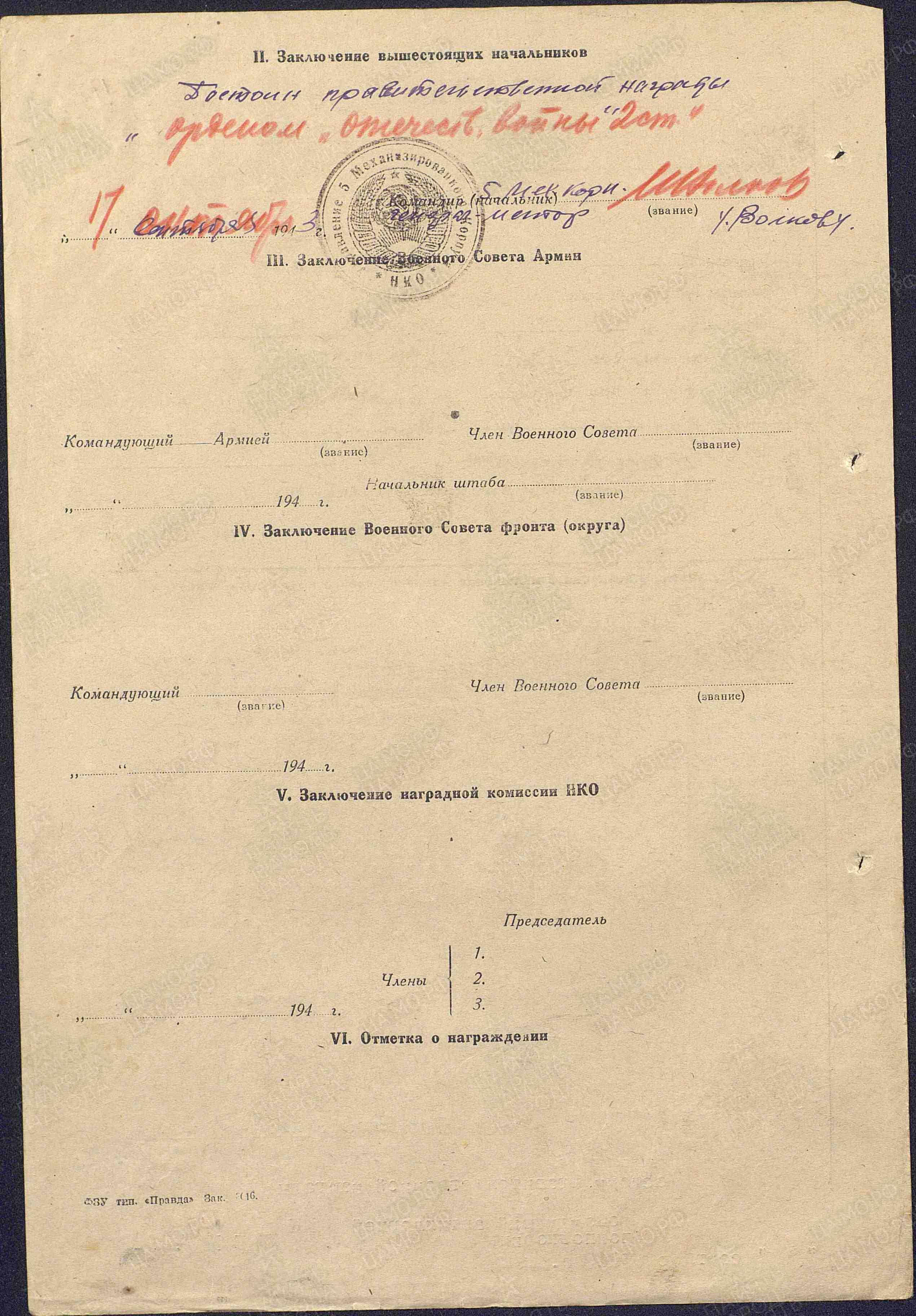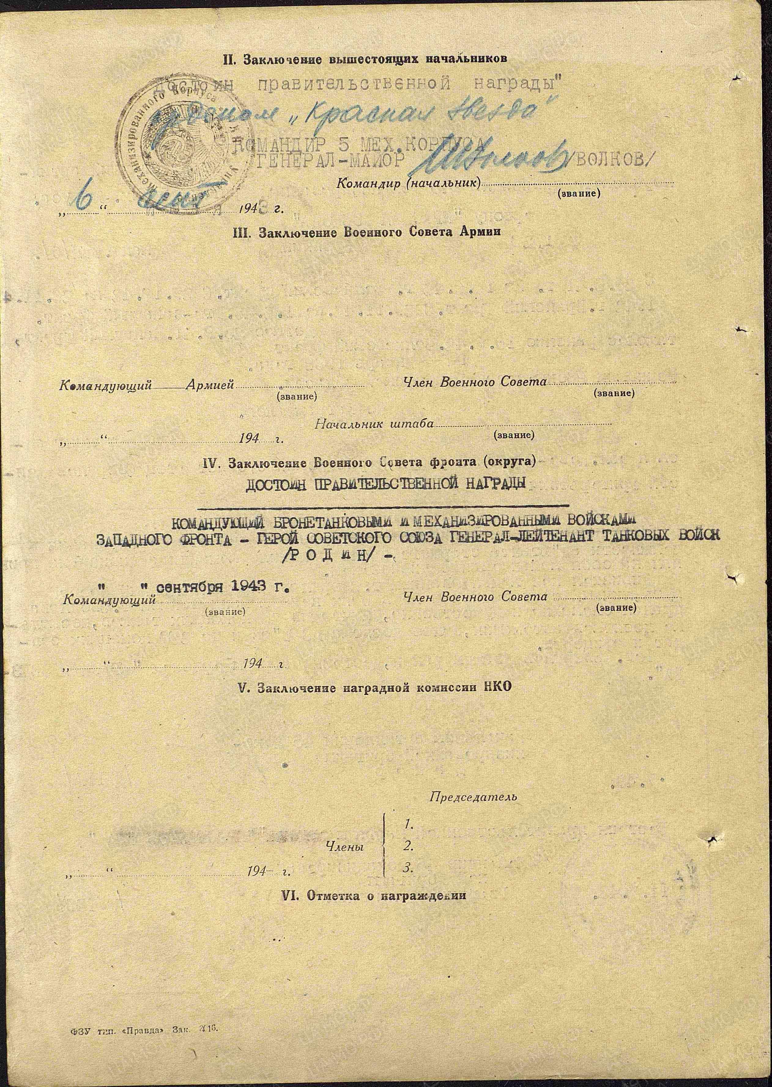 6. ЛИЧНАЯ СТРАНИЦА  на гвардии подполковника СВЕРДЛОВА И. М.: