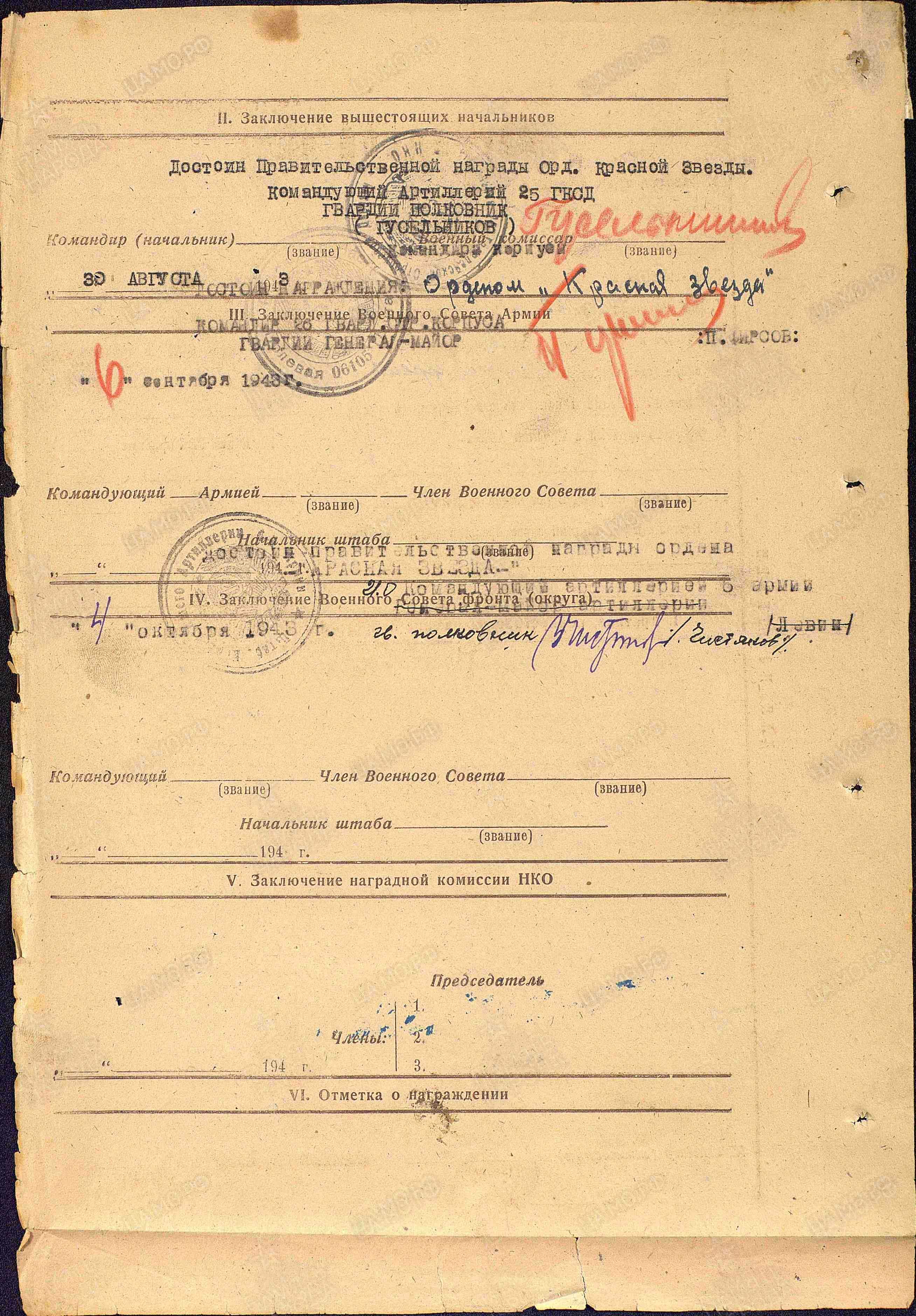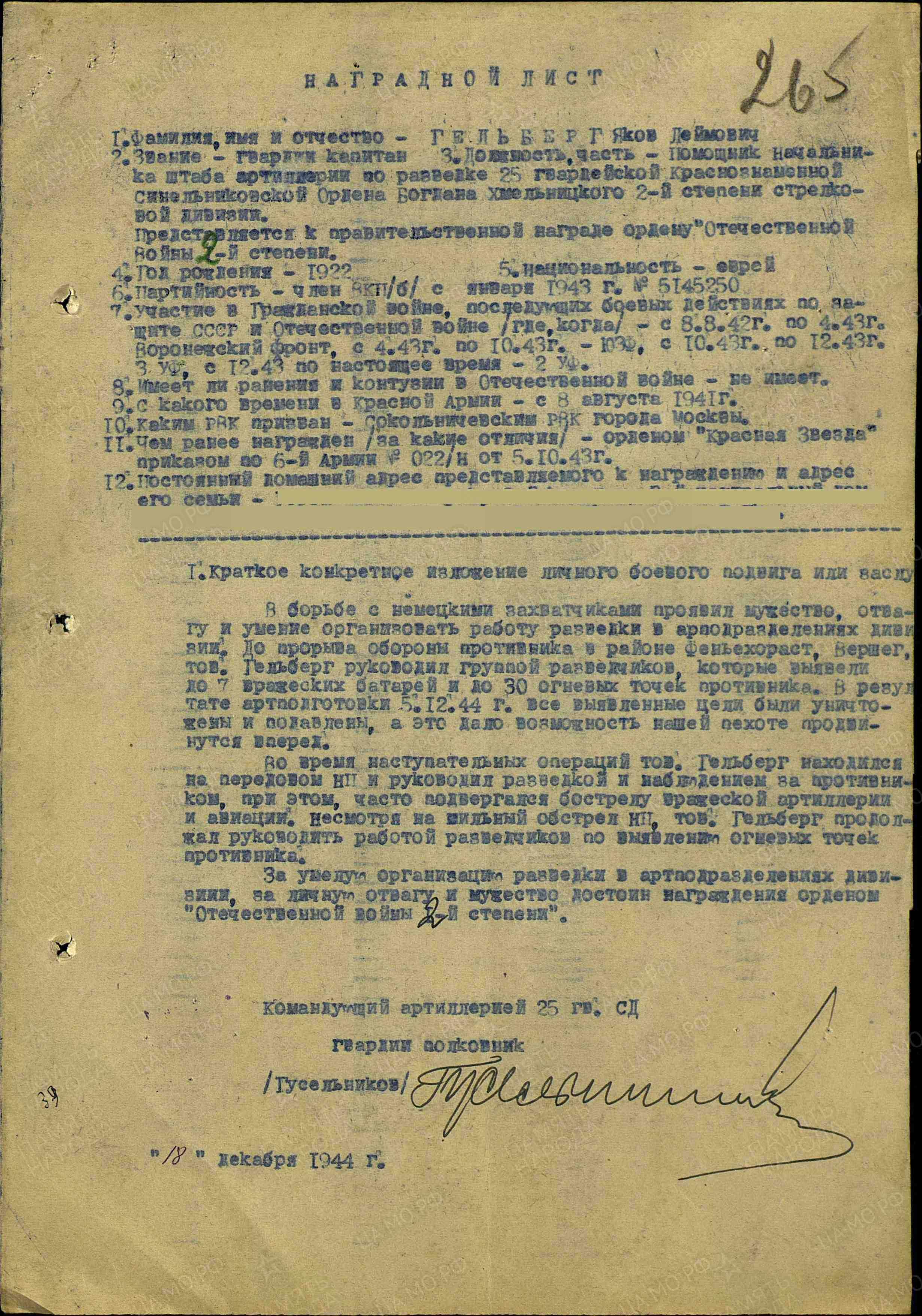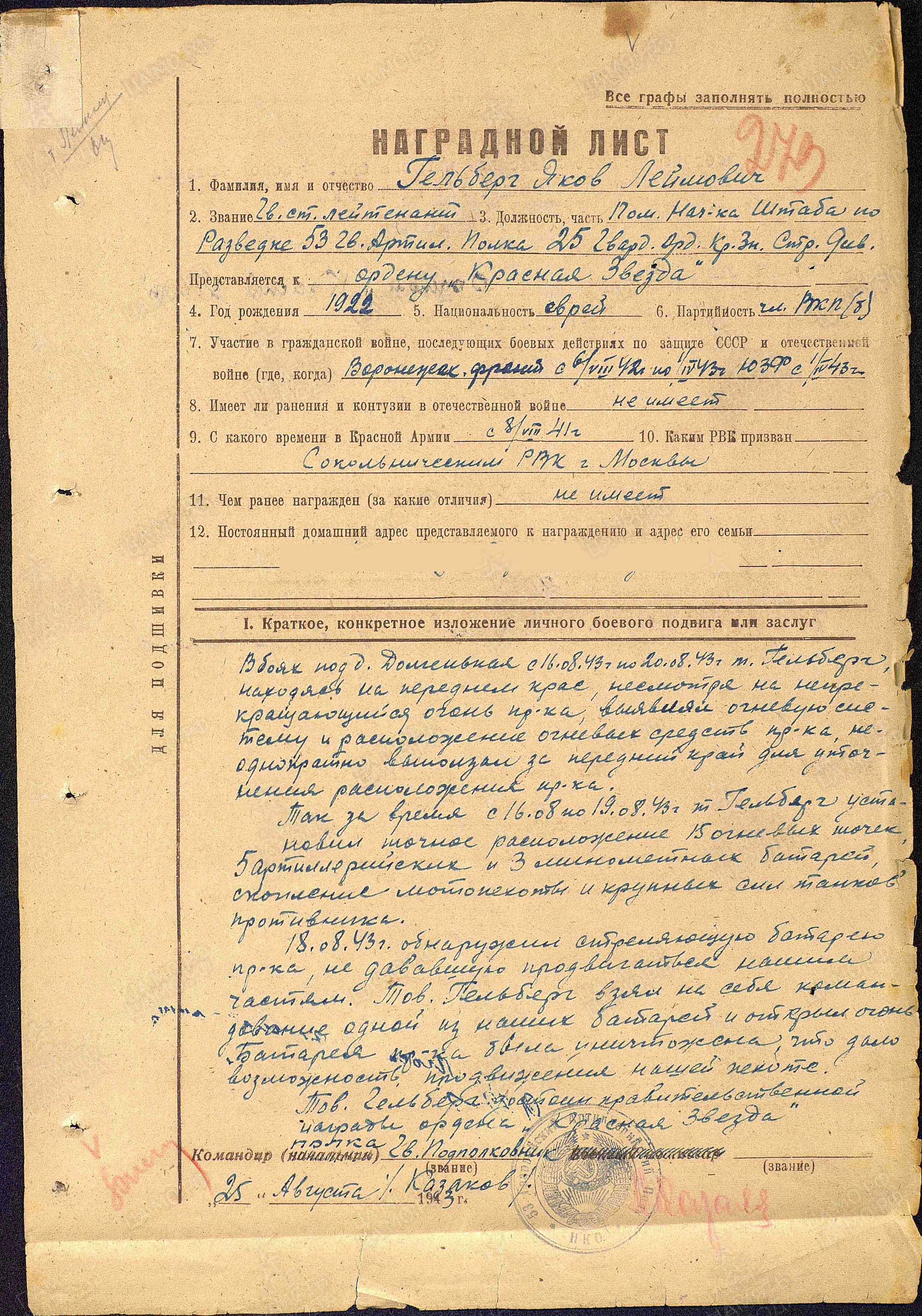 Тов. Гельберг достоин правительственной награды ордена Красная Звезда.